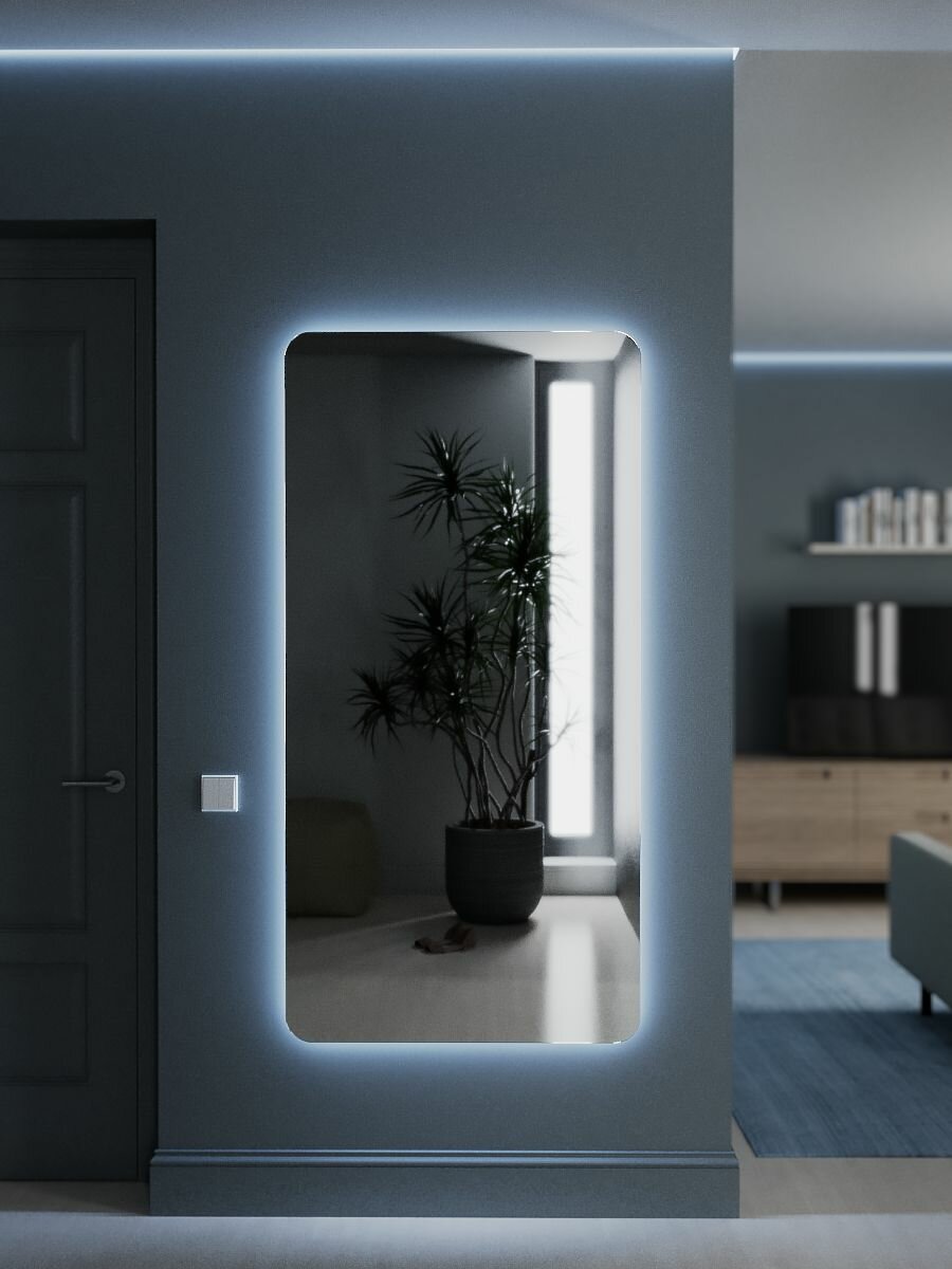 СохранитьЗеркало настенное 160х80 см с фоновой подсветкой 6500К без рамы для прихожей, ванной и туалетного столика, зеркало в полный рост серии VALLETTA интересное: