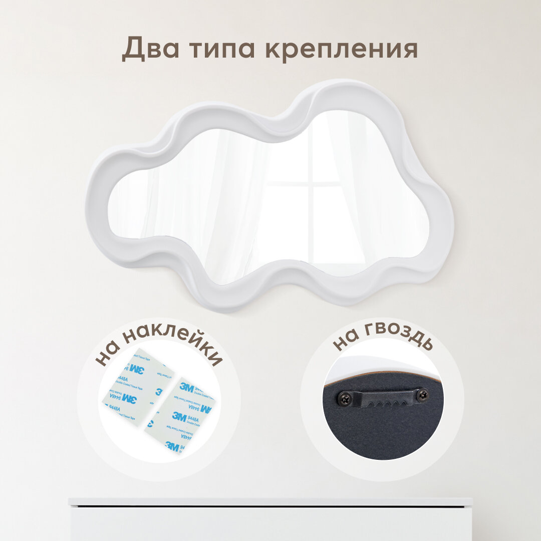 40079, Зеркало детское Happy Baby, облачко, с наклейками-держателями, пластиковая основа, белое интересное: