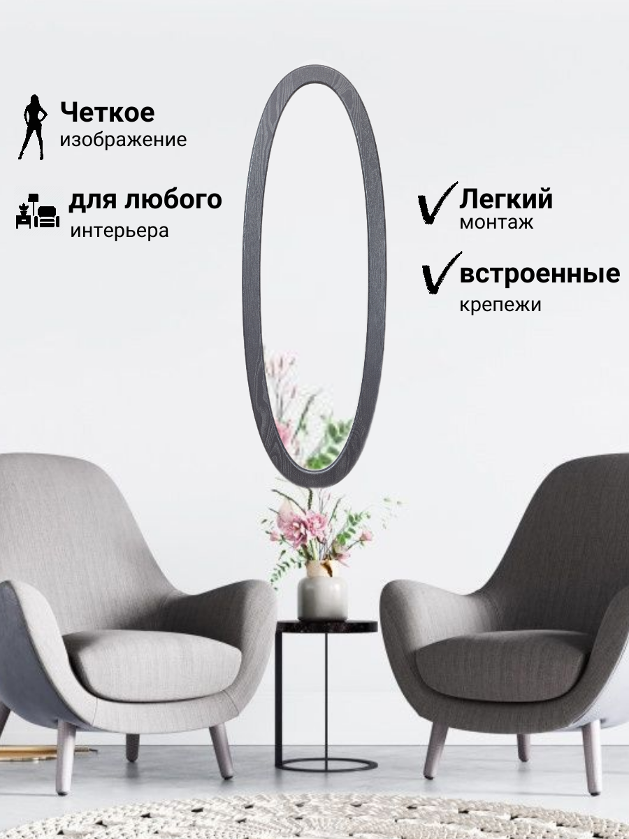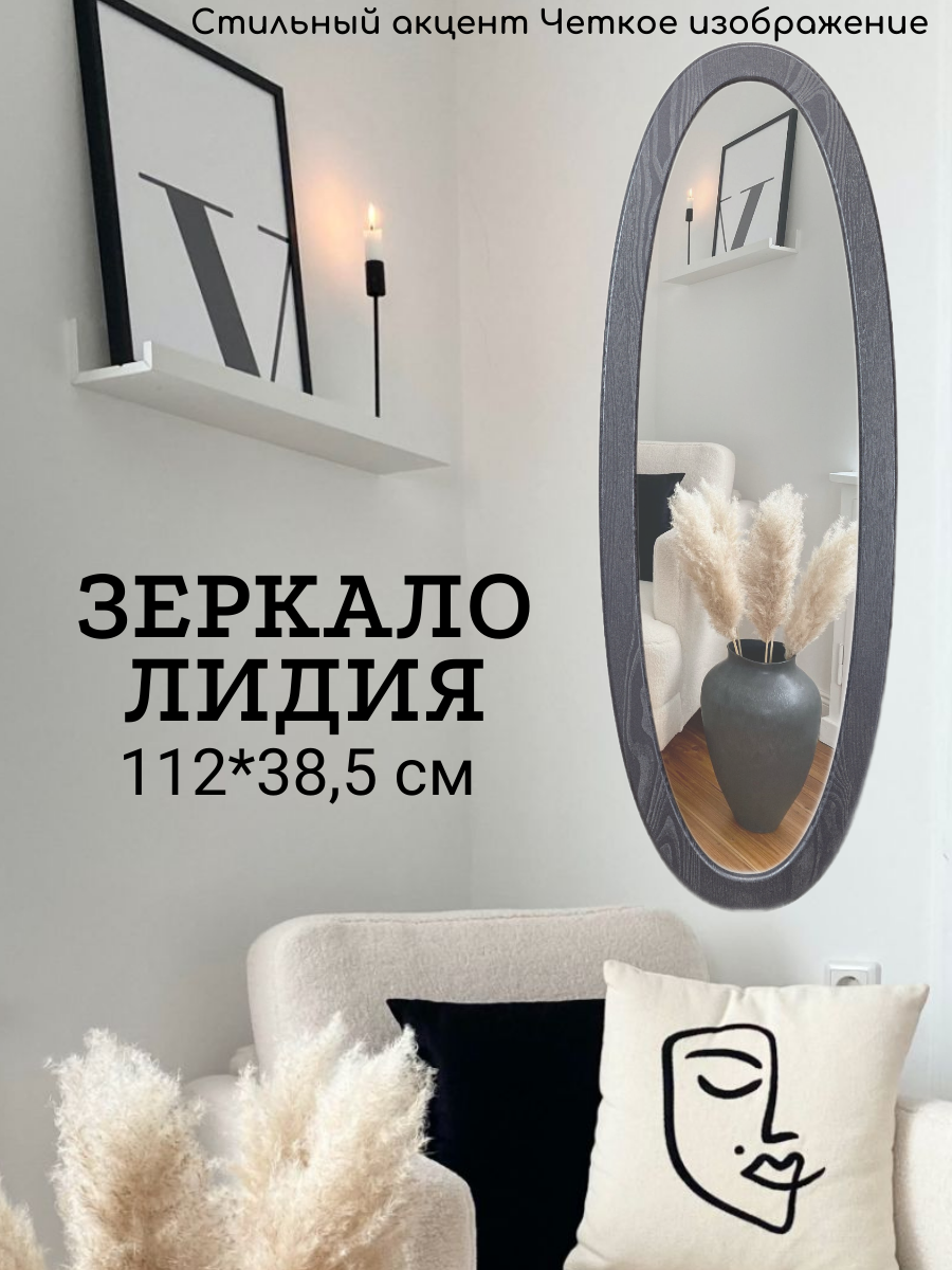 Зеркало настенное в прихожую овальное с рамой Лидия МДФ 112x38,5 см серый интересное: