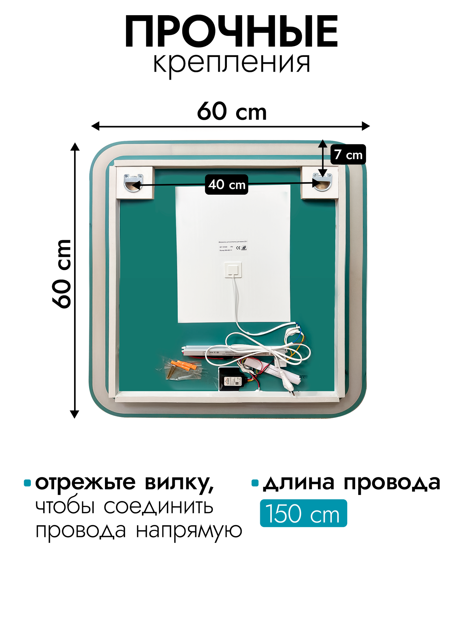 СохранитьНастенное зеркало с подсветкой и подогревом в ванную Laino 60х60 см (ореольная подсветка, холодный свет 6000К, сенсорное управление, прямоугольное зеркало для ванной, функция Антипар) интересное: