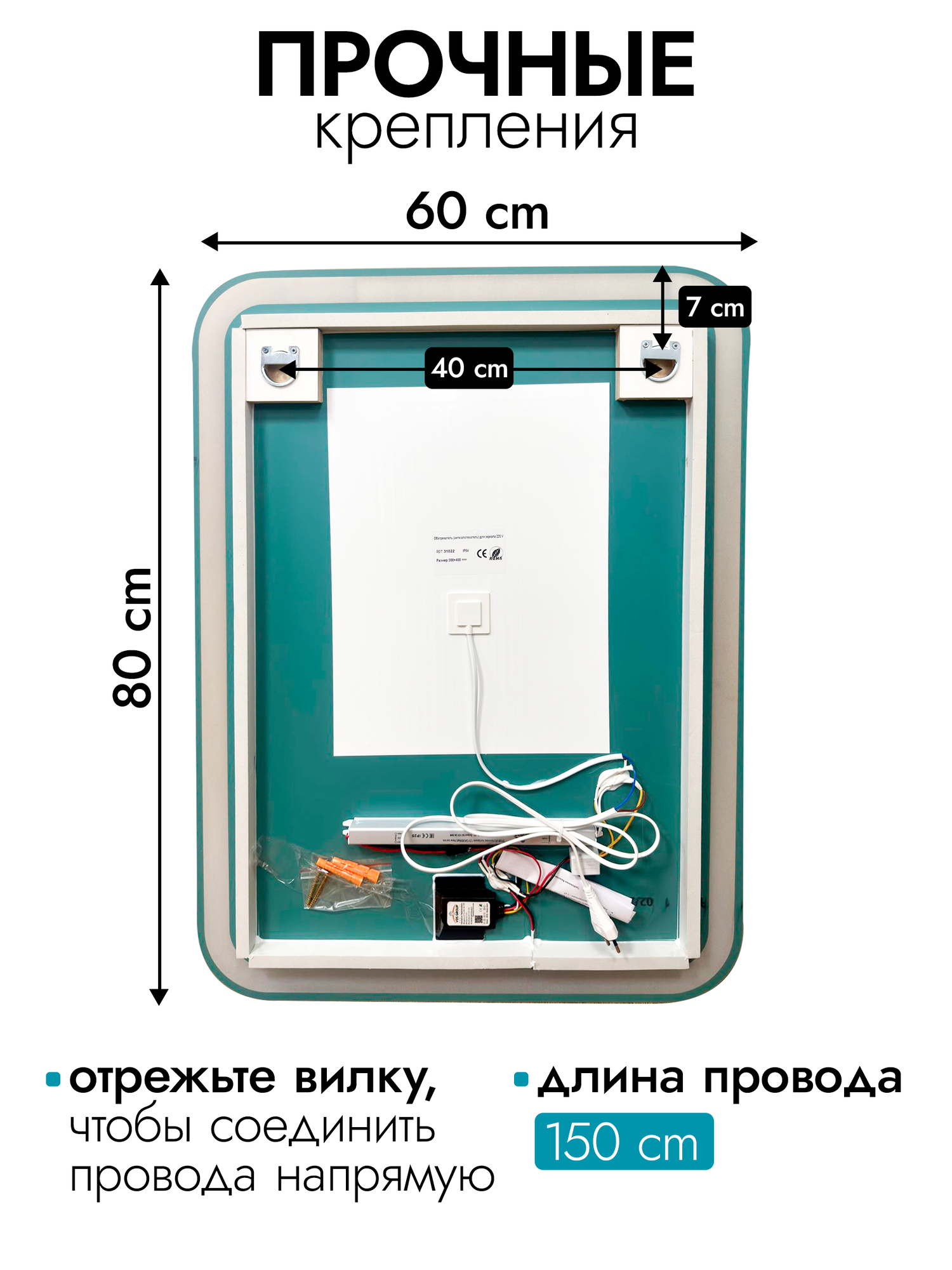 Настенное зеркало в ванную с подсветкой и подогревом laino 70*80 (ореольная подсветка, холодная 6000K, функция Антипар)