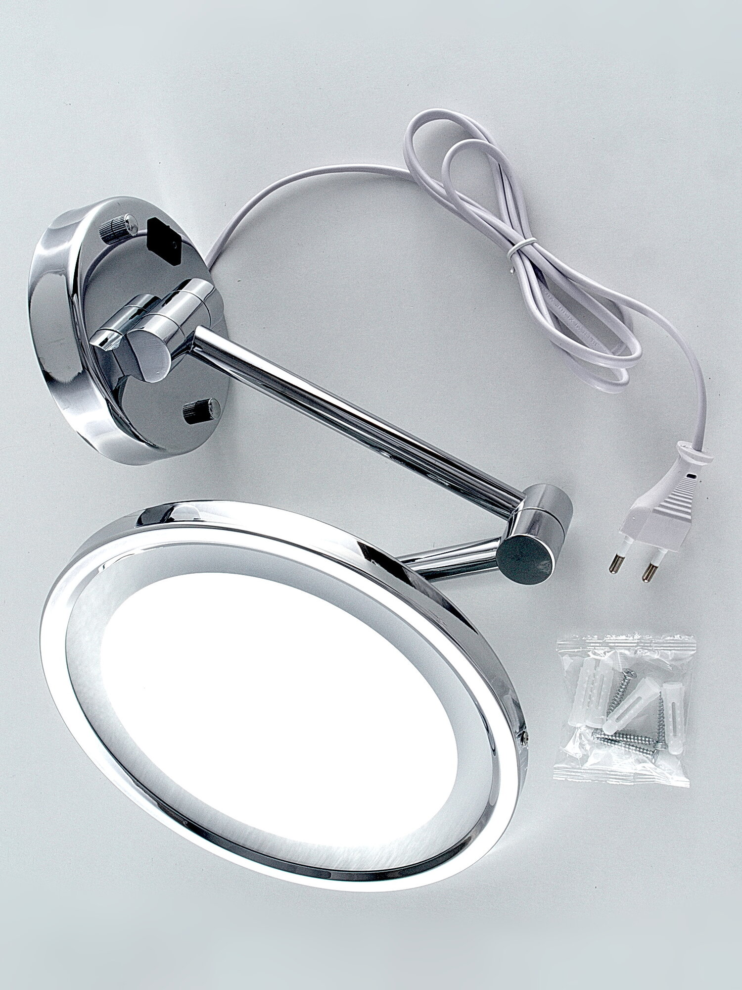 Купить Зеркало косметическое Potato P766 с подсветкой круглое, настенное, увеличение 3Х, хром