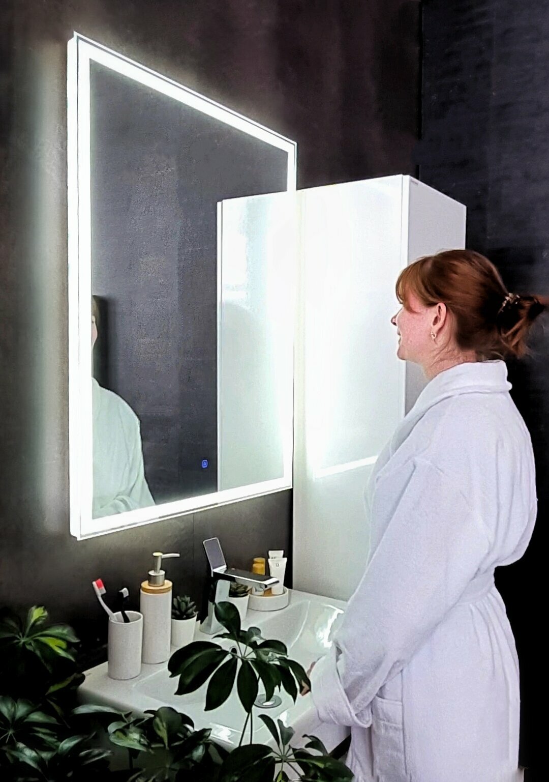 Зеркало настенное для ванной КерамаМане 70*100 см с холодной подсветкой 6000 К с сенсорной кнопкой