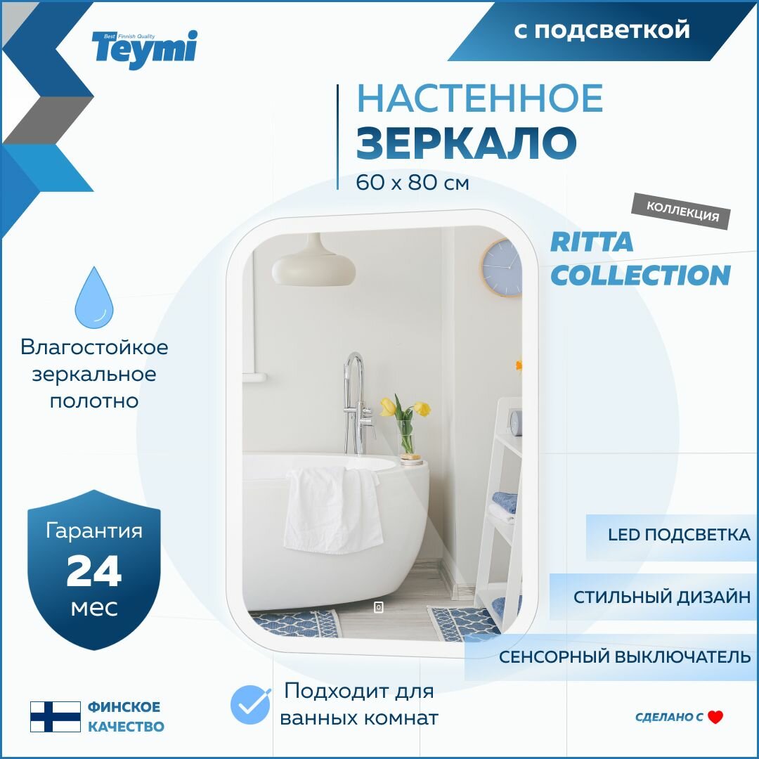 Зеркало настенное с подсветкой в ванную Teymi Ritta 60х80 LED сенсор T20248 интересное: