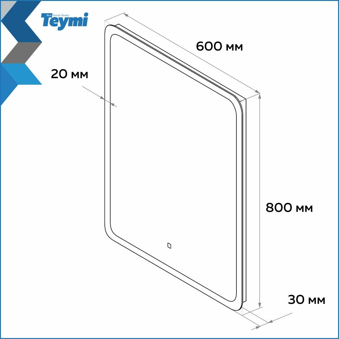Купить Зеркало настенное с подсветкой в ванную Teymi Ritta 60х80 LED сенсор T20248