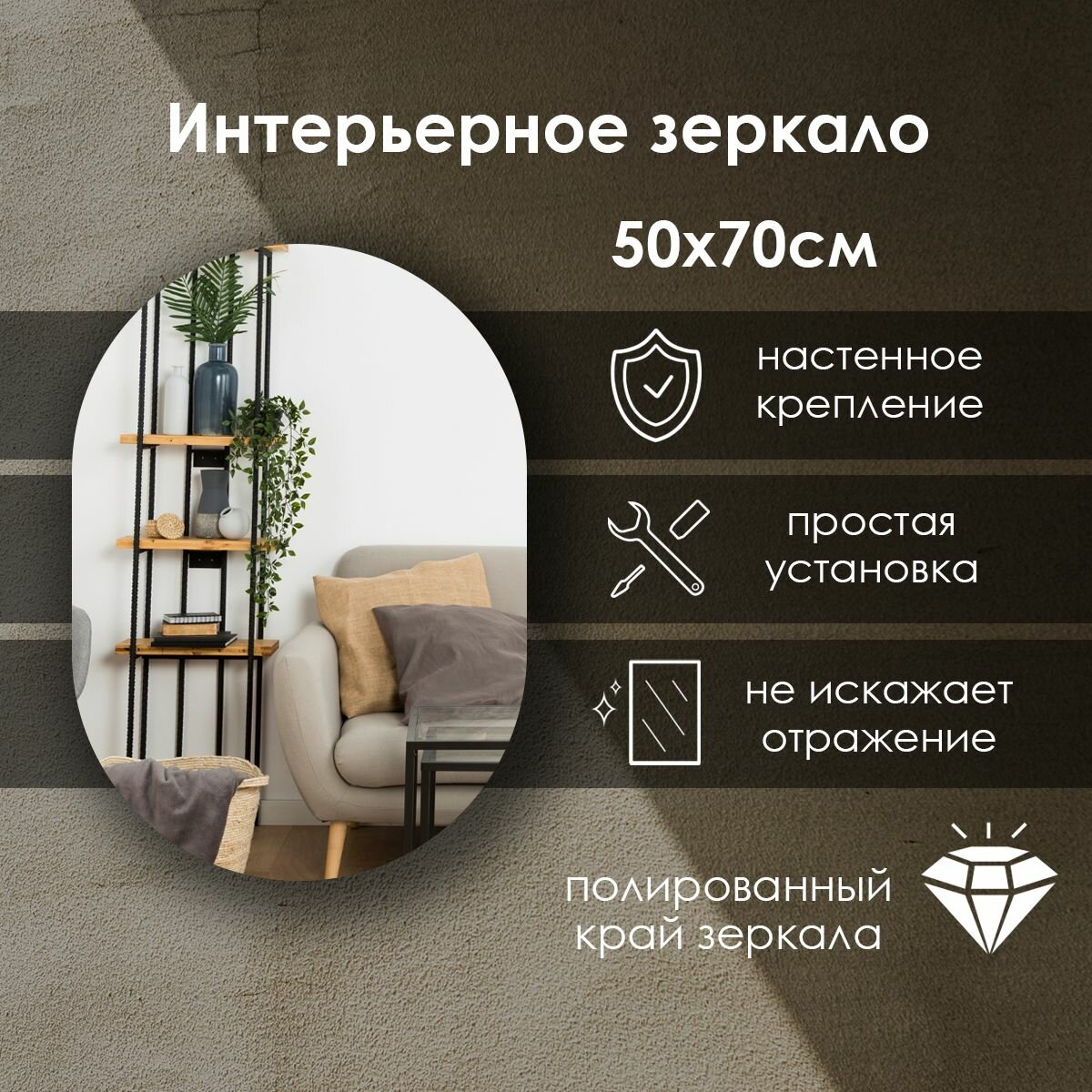 Зеркало интерьерное Maskota Elen, капсульное, без рамы, 80x50 см