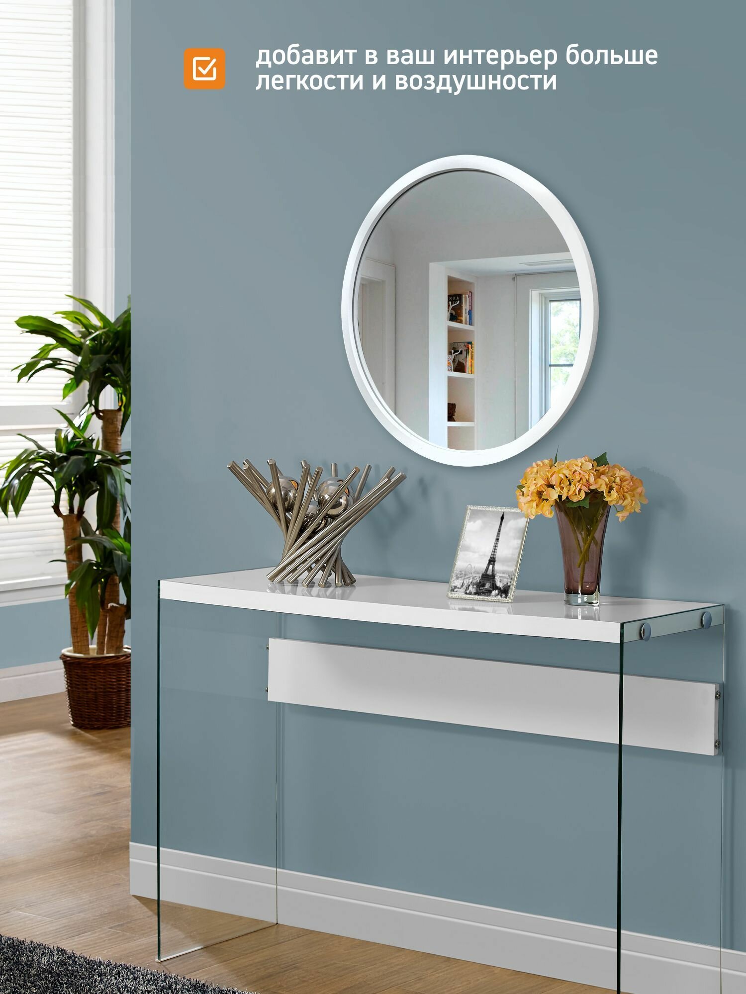 Зеркало настенное круглое в белой раме