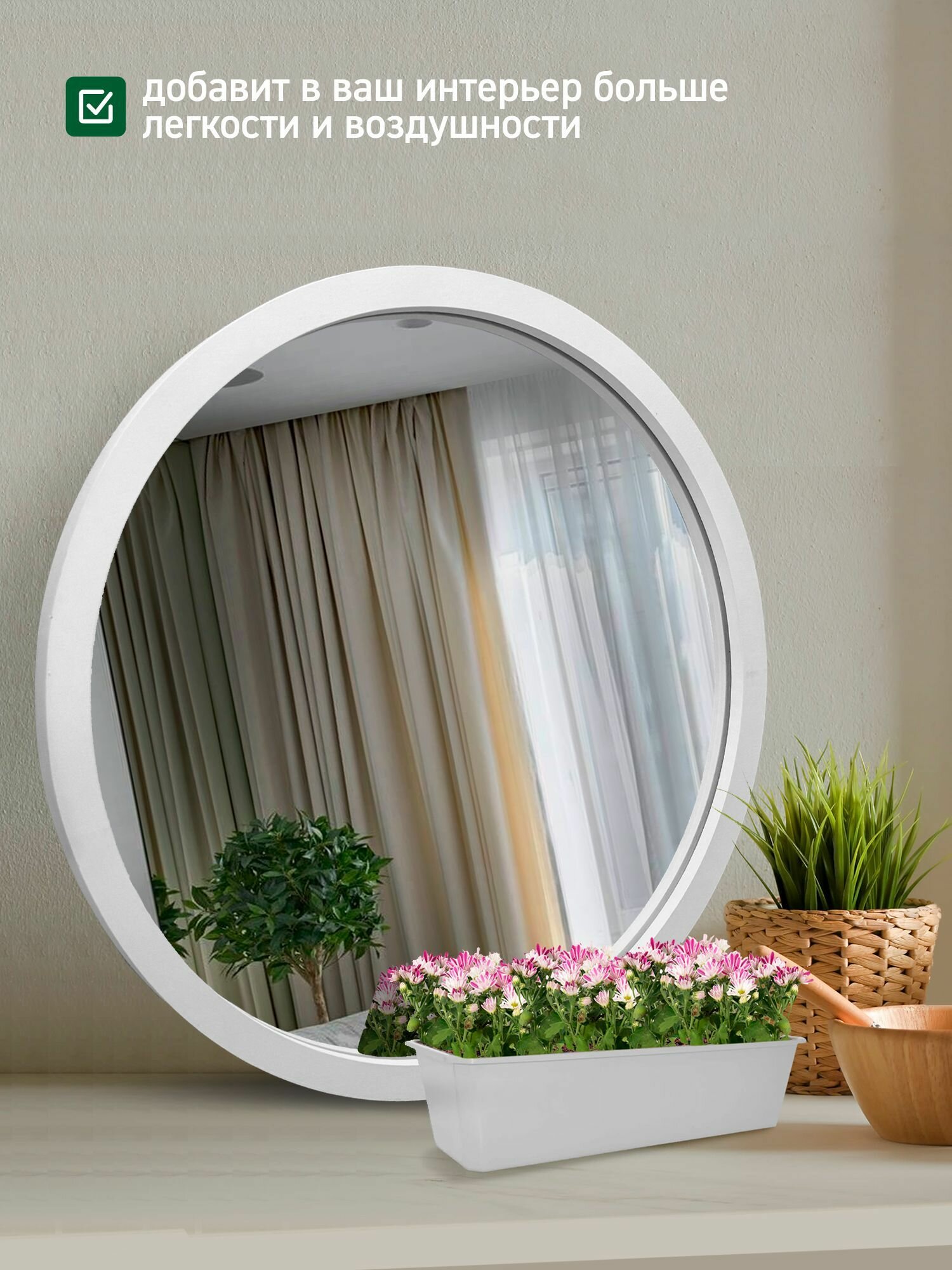 Зеркало настенное круглое в белой раме интересное: