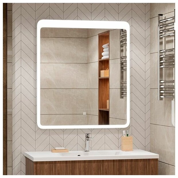 Купить Зеркало настенное в ванную комнату с LED подсветкой Air 800*900 прямоугольное с сенсорным управлением