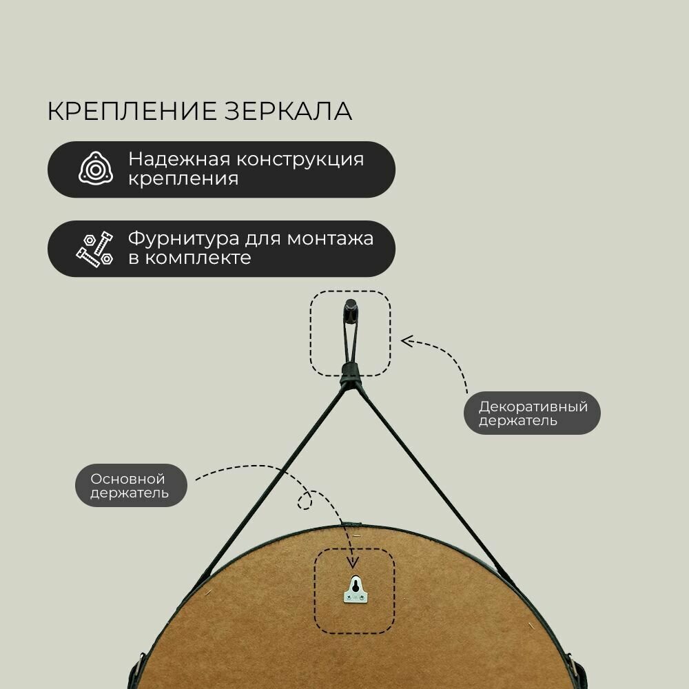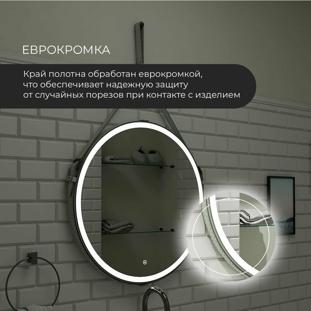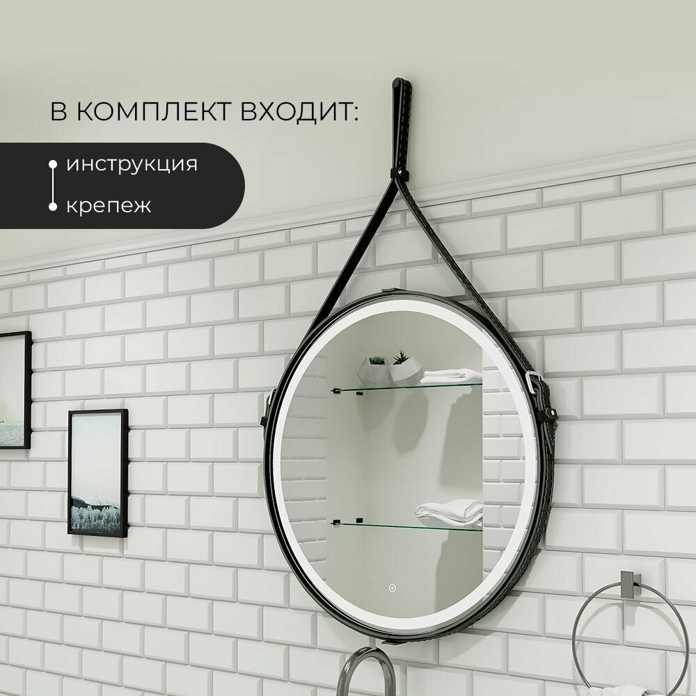 Зеркало с подсветкой в ванную комнату настенное сенсорное "Millenium Black Led" D 650 на ремне из натуральной кожи черного цвета интересное: