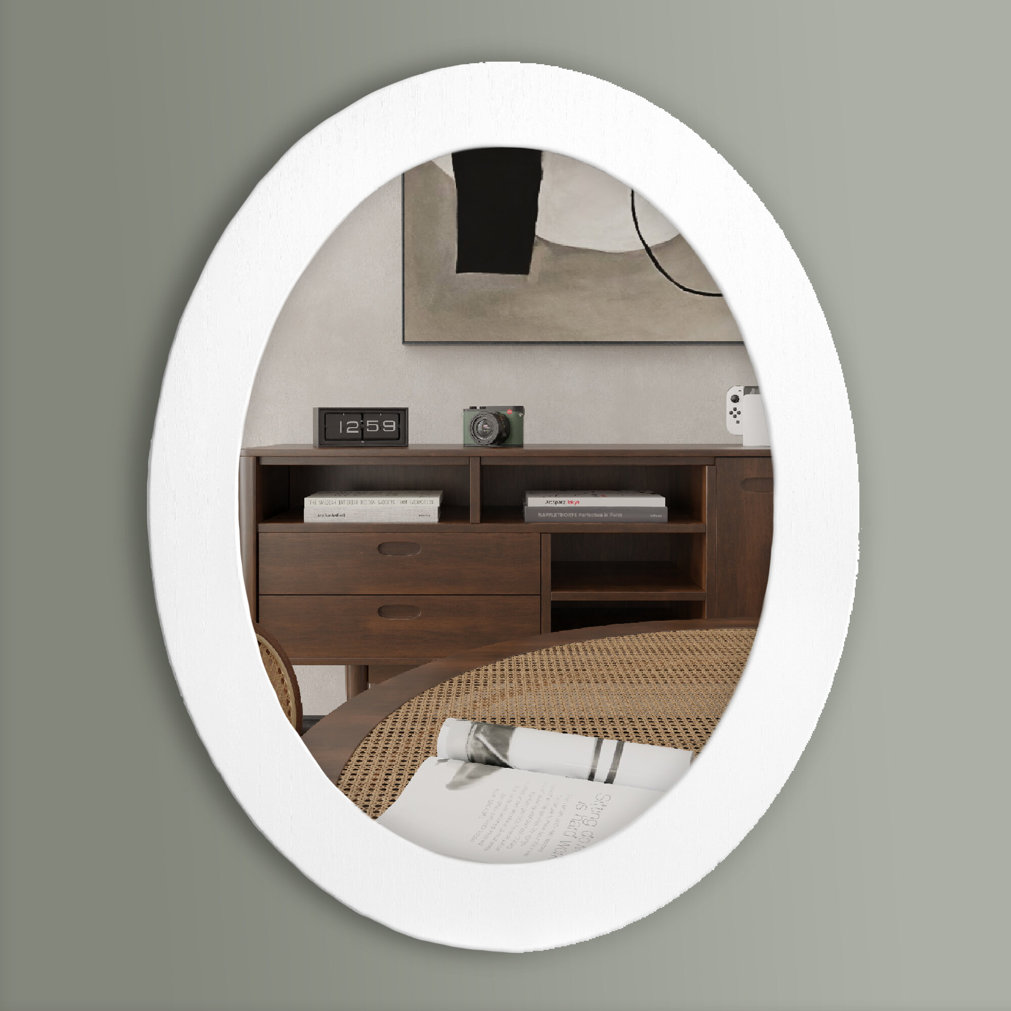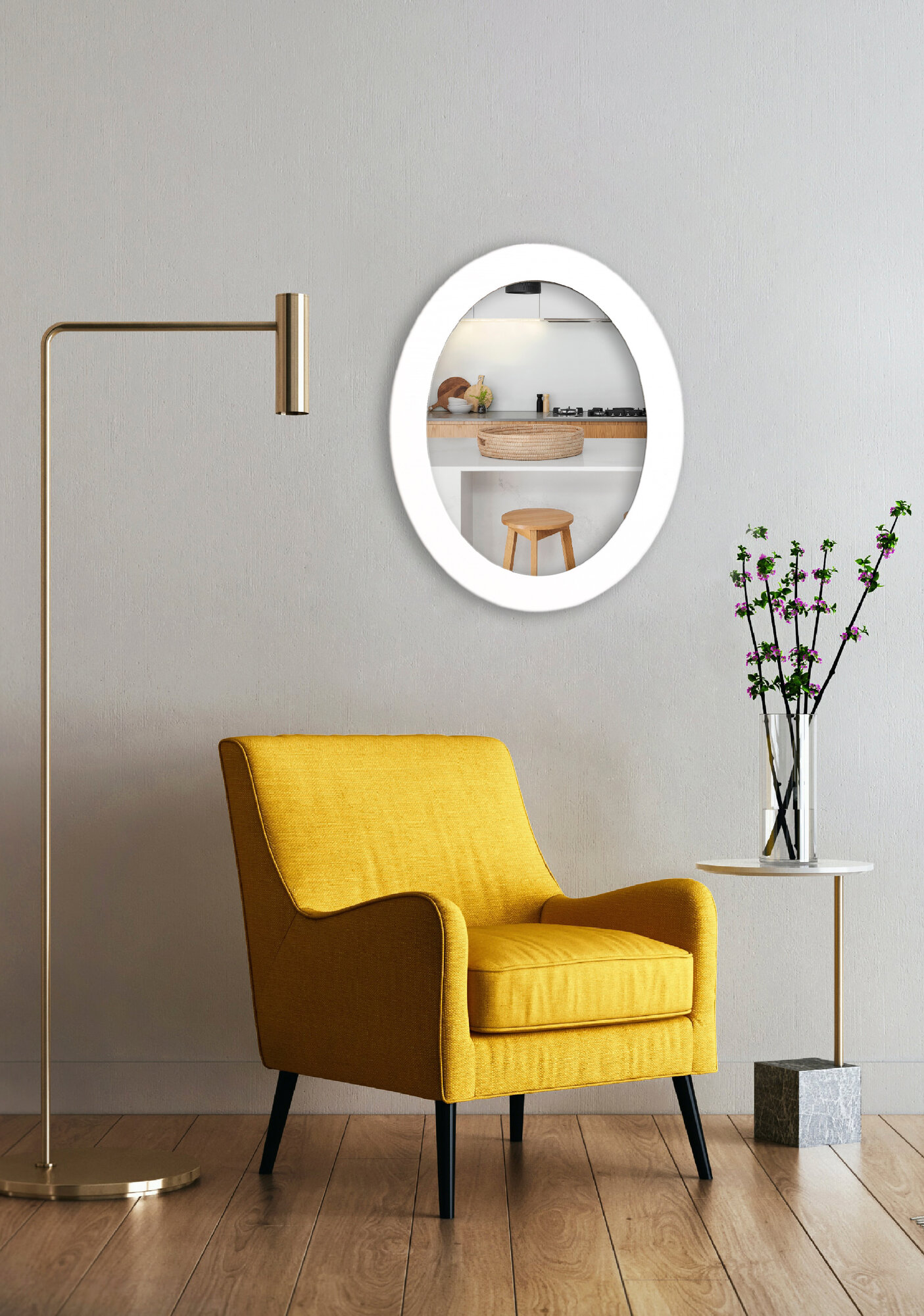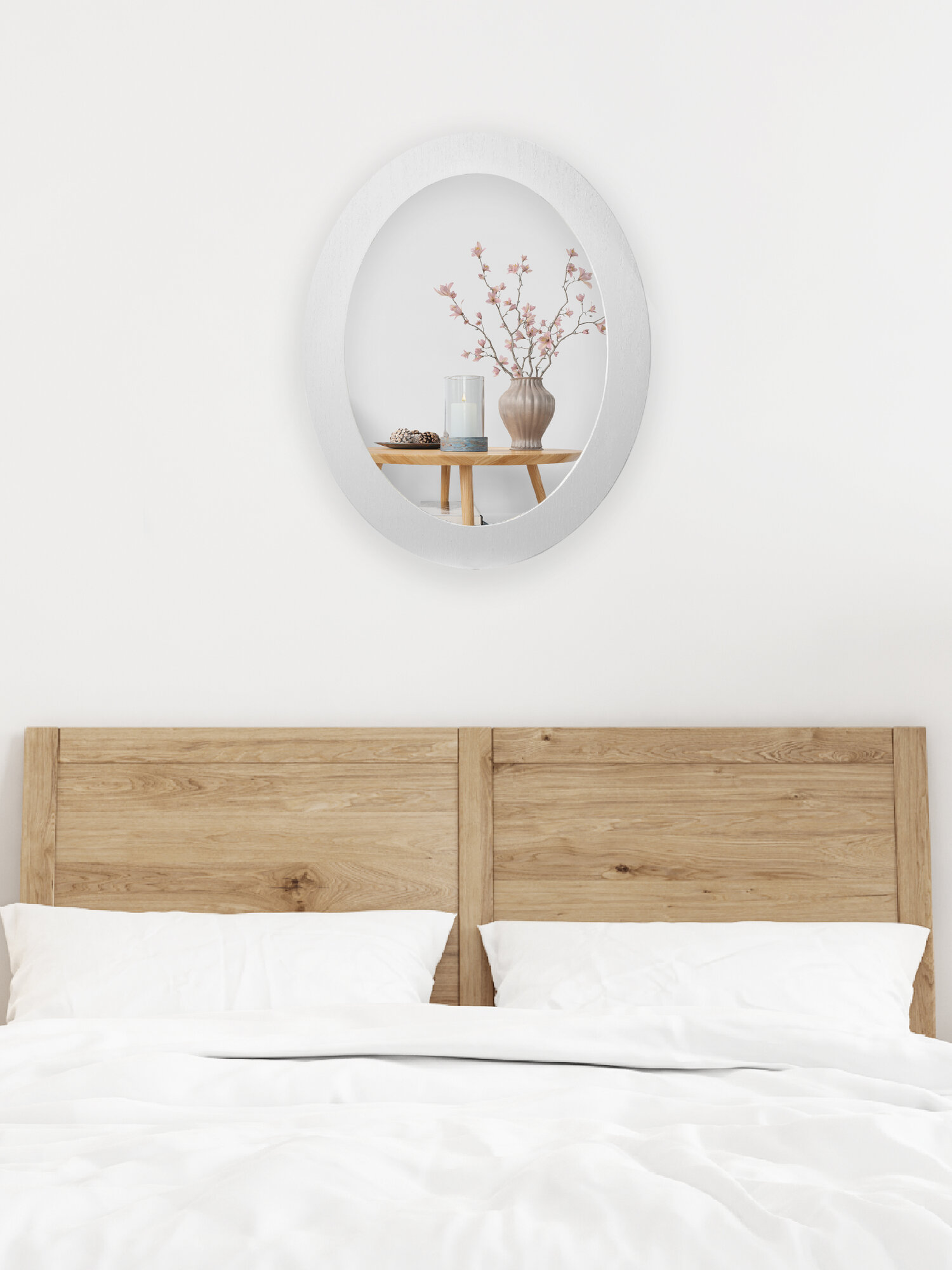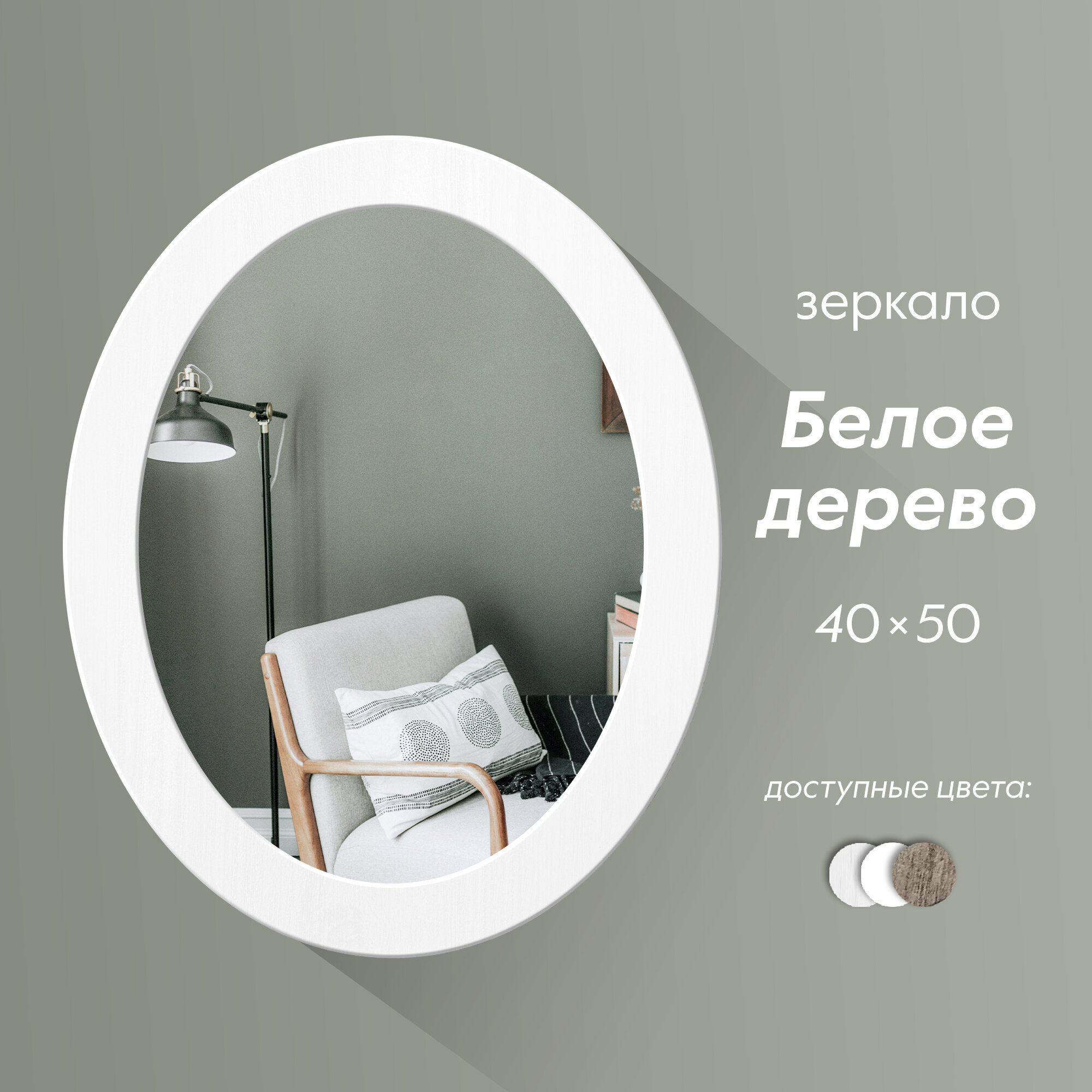 Зеркало Postermarket, овальное, 40x50 см, настенное, с рамой, белое дерево интересное: