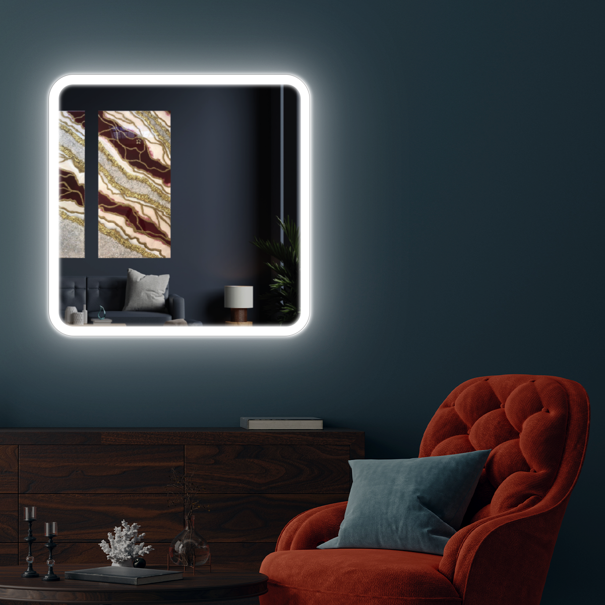 Зеркало настенное Maskota для ванной квадратное скругленное, с фронтальной подсветкой, 70х70 см