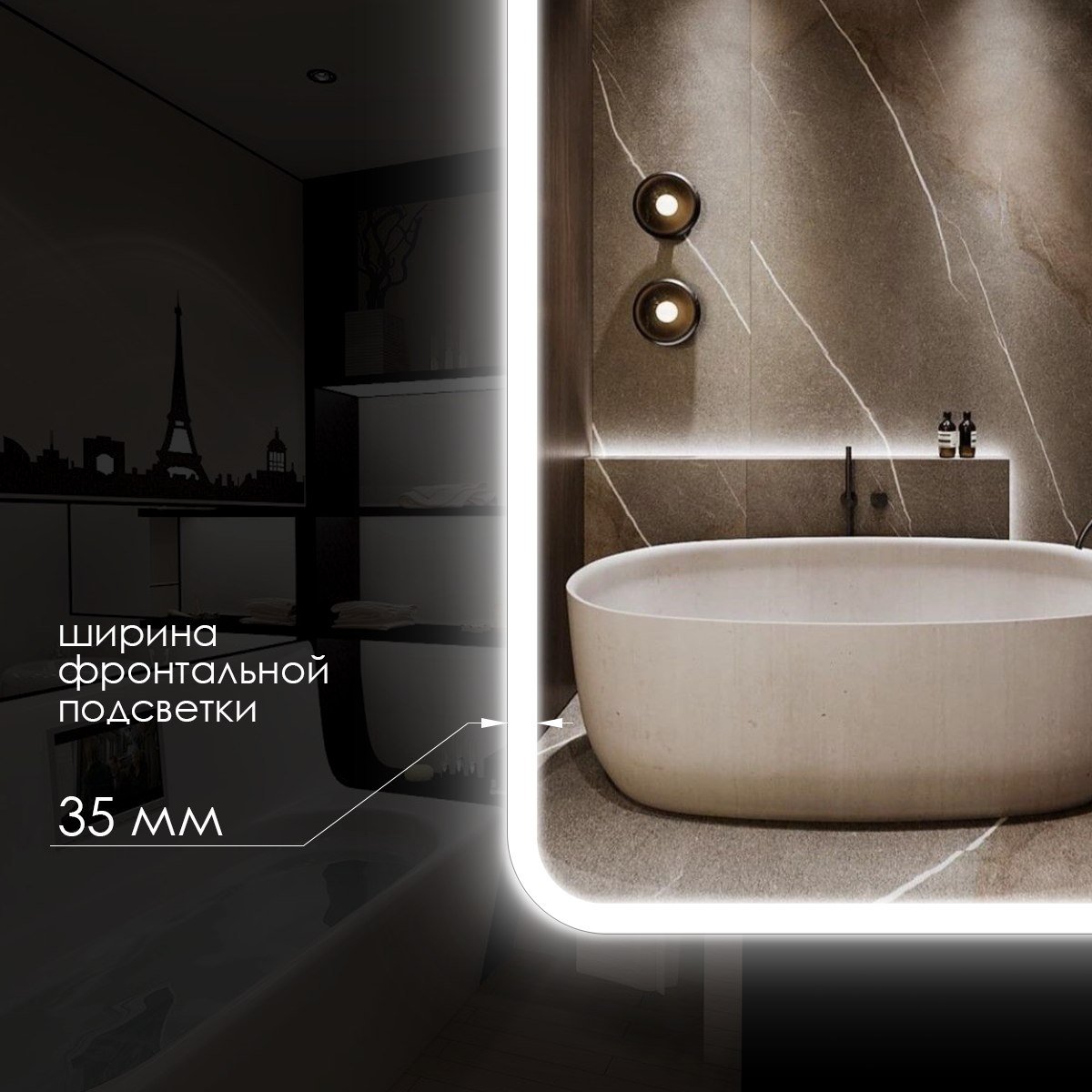 Зеркало настенное Maskota для ванной квадратное скругленное, с фронтальной подсветкой, 70х70 см