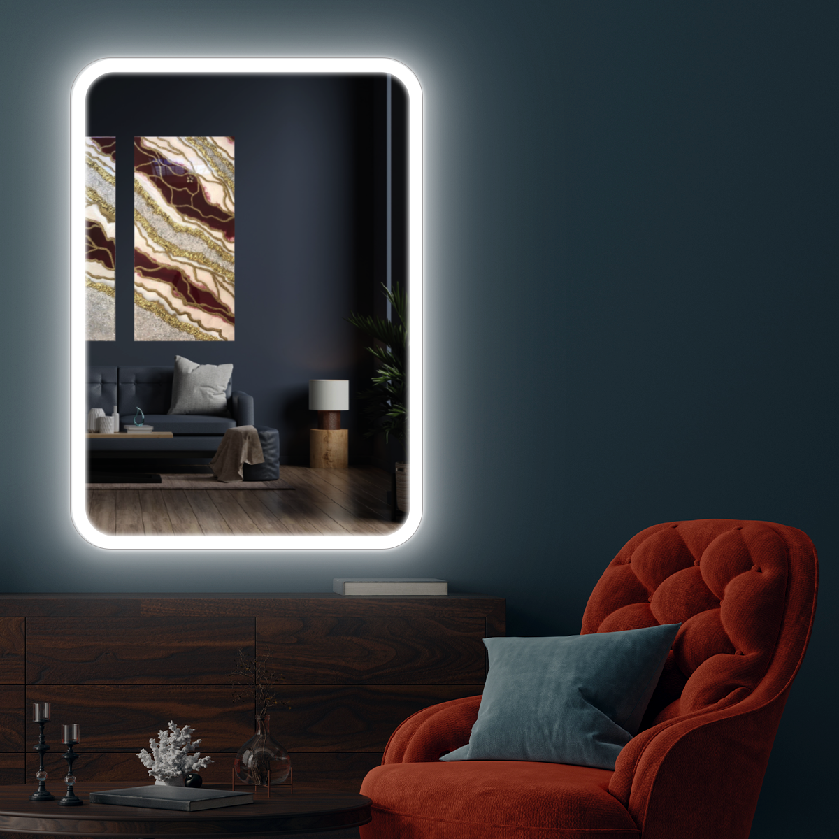 Зеркало настенное Maskota для ванной квадратное скругленное, с фронтальной подсветкой, 60х60 см