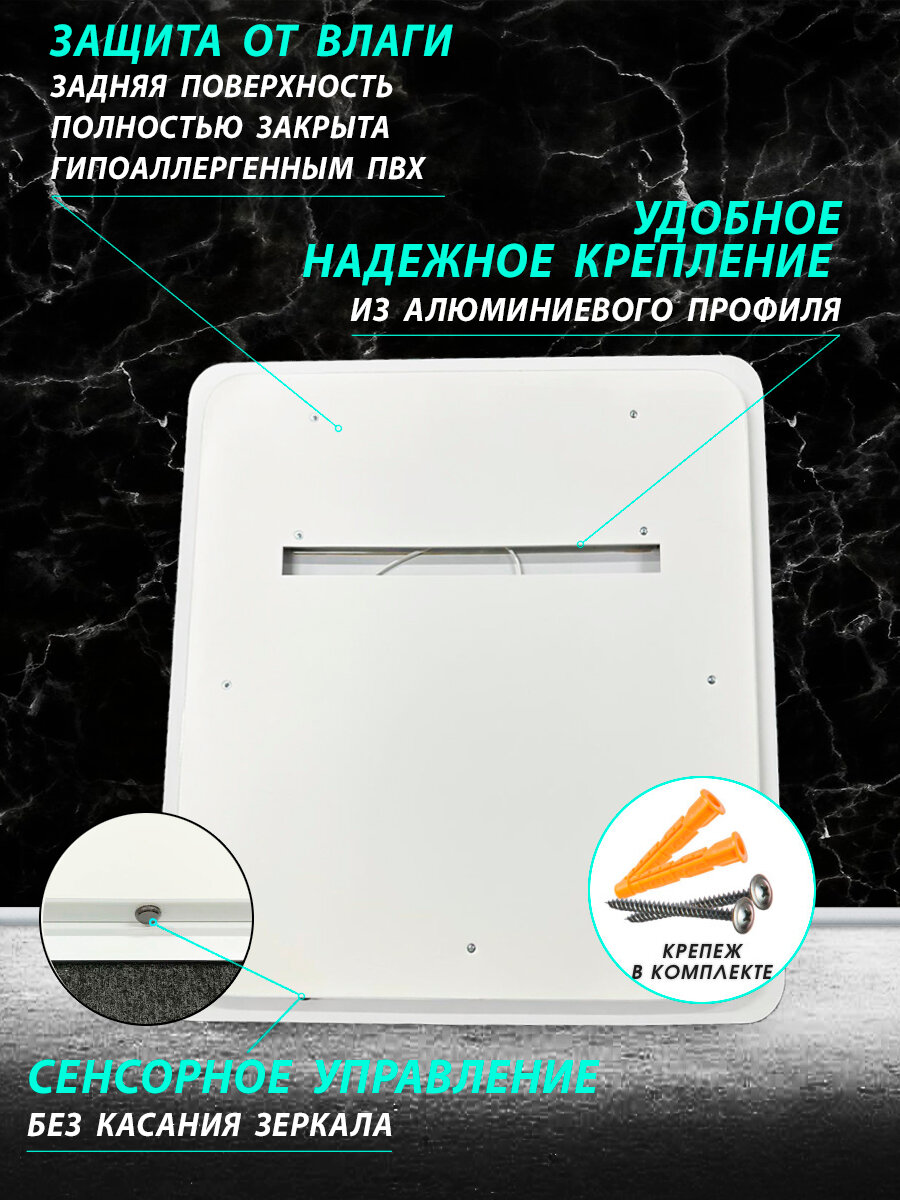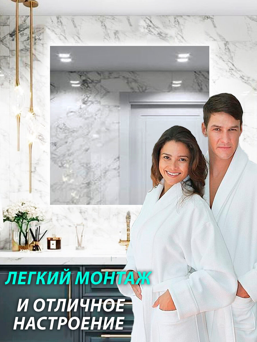 Зеркало настенное для ванной КерамаМане 80*80 см со светодиодной сенсорной нейтральной подсветкой 4000 К интересное: