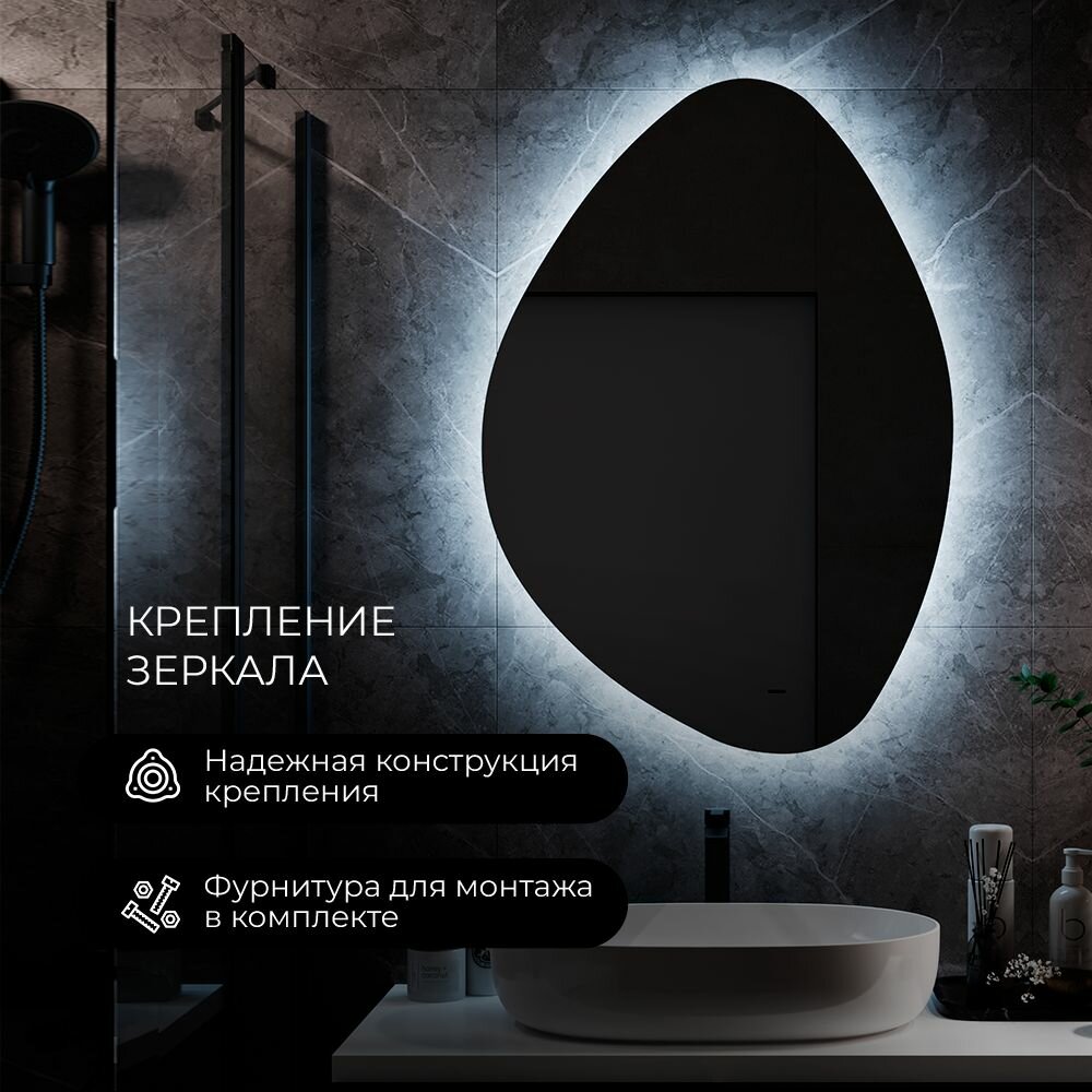 Зеркало с ореольной LED подсветкой в ванную комнату "Origami Led" 60х85см (холодный свет 6000К, фигурное настенное для ванной сенсорное выключение) интересное: