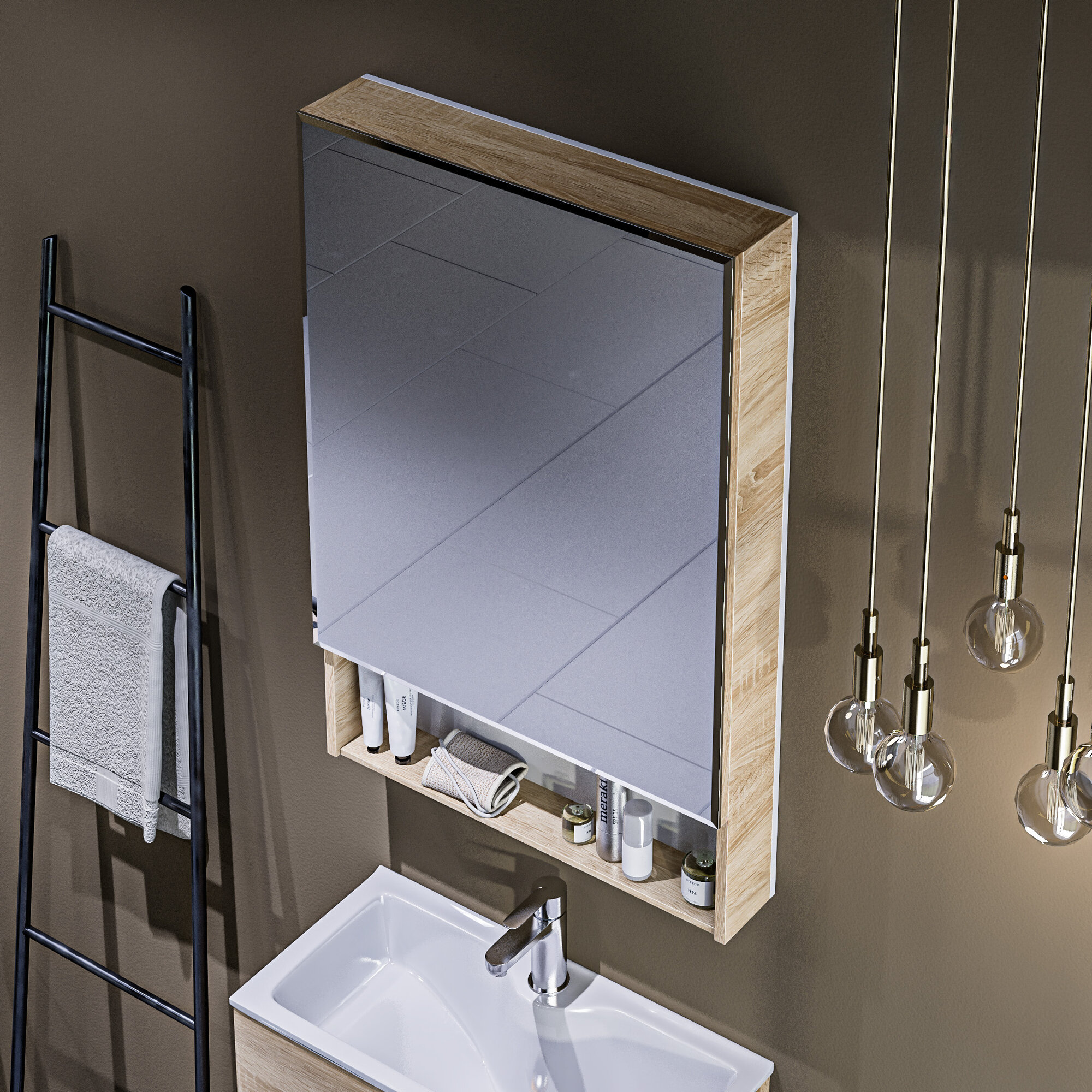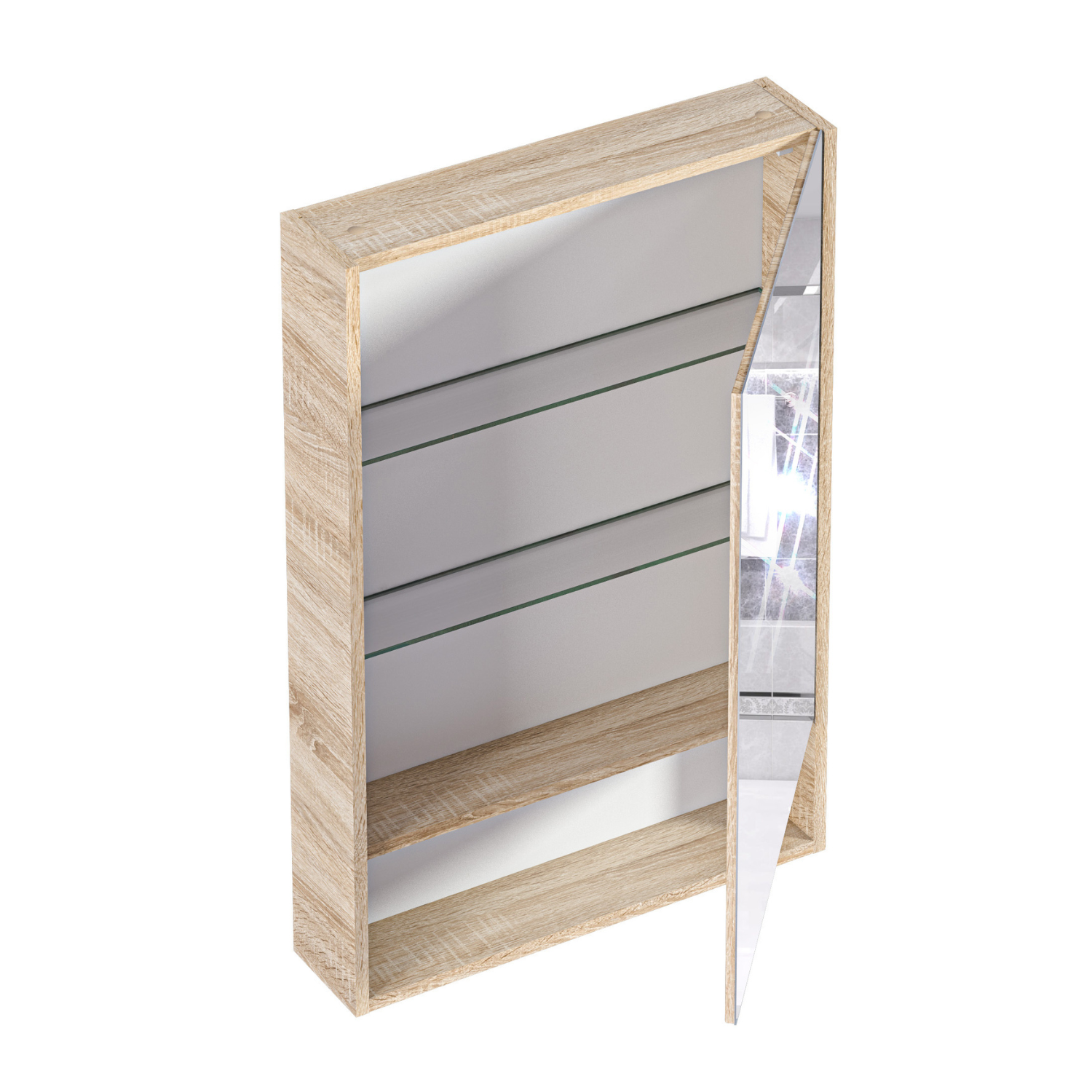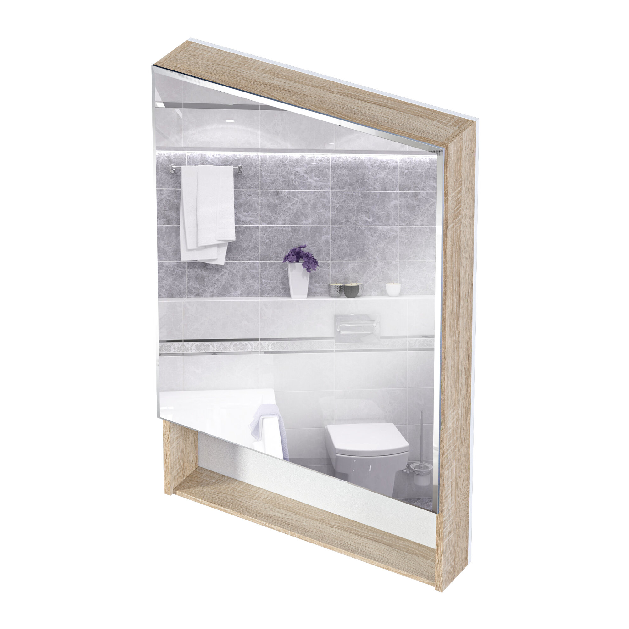 Купить Подвесное зеркало-шкаф в ванную 60х90 см Mira 1Marka, цвет Дуб Сонома У84861МП