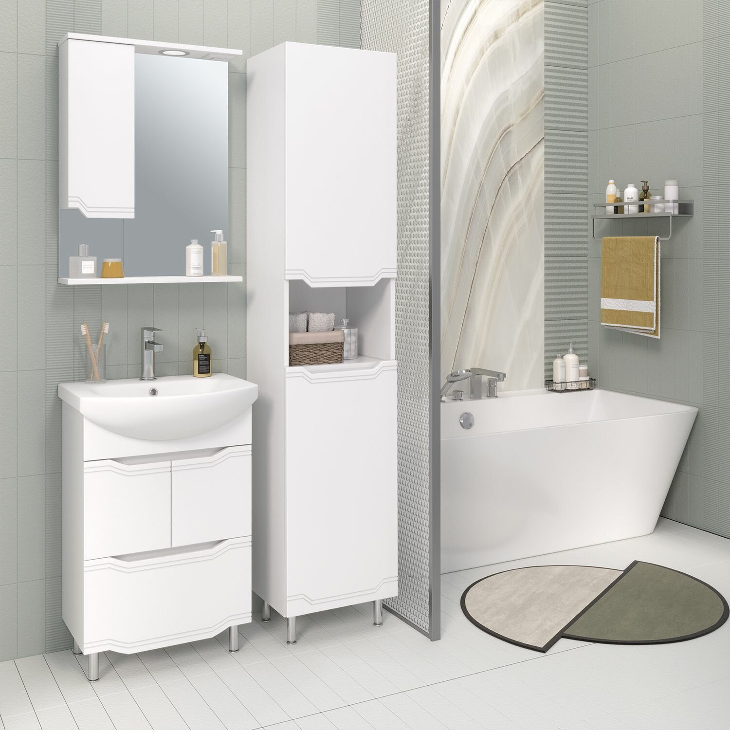 Купить Зеркало в ванную Aqua de Marco VIKTORIA 55 см, шкафчик слева, белое