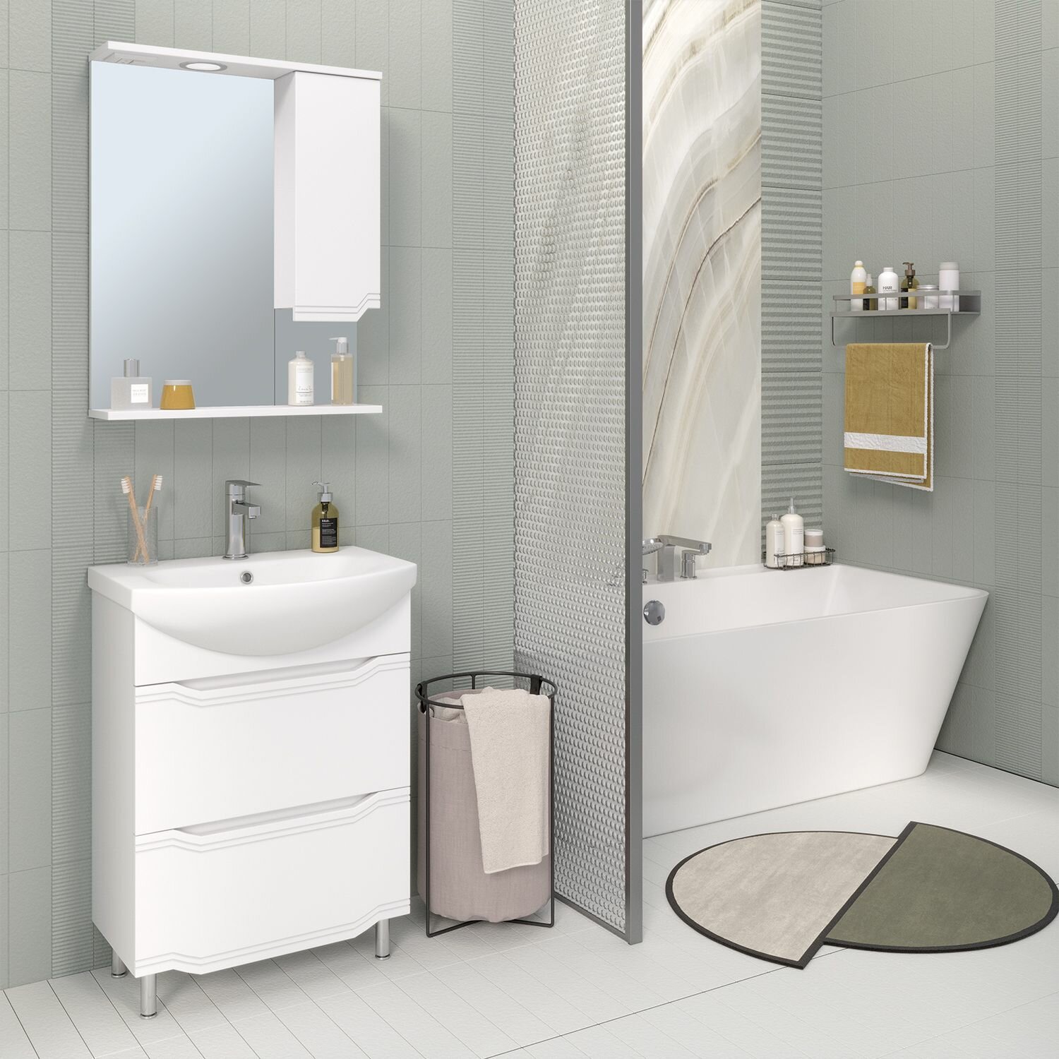 Купить Зеркало в ванную Aqua de Marco VIKTORIA 60 см, шкафчик справа, белое