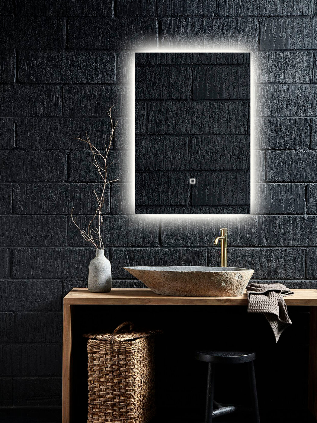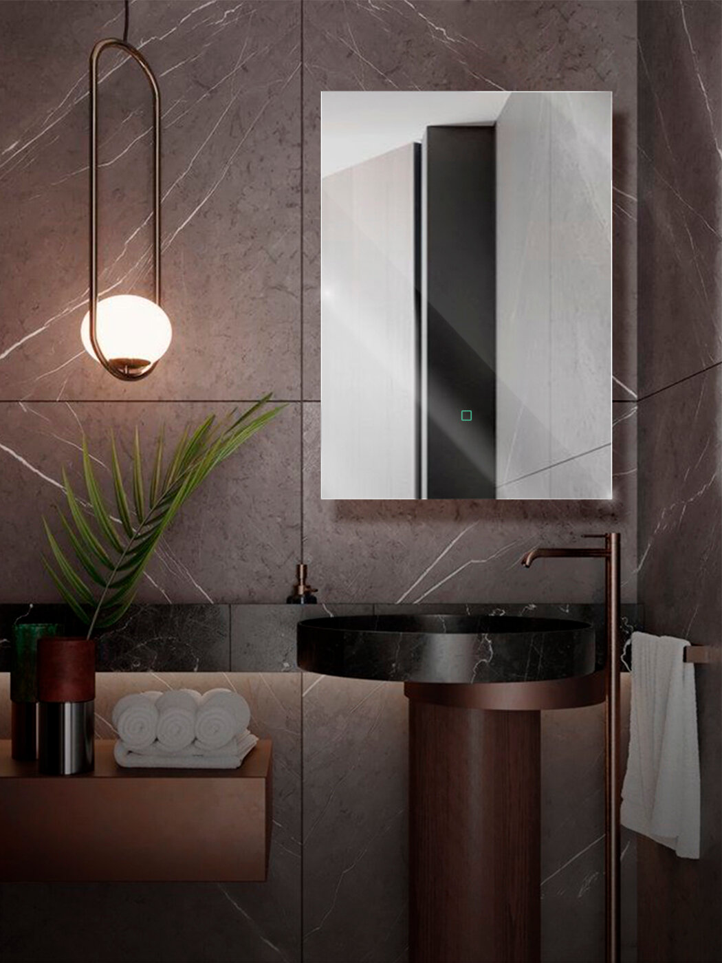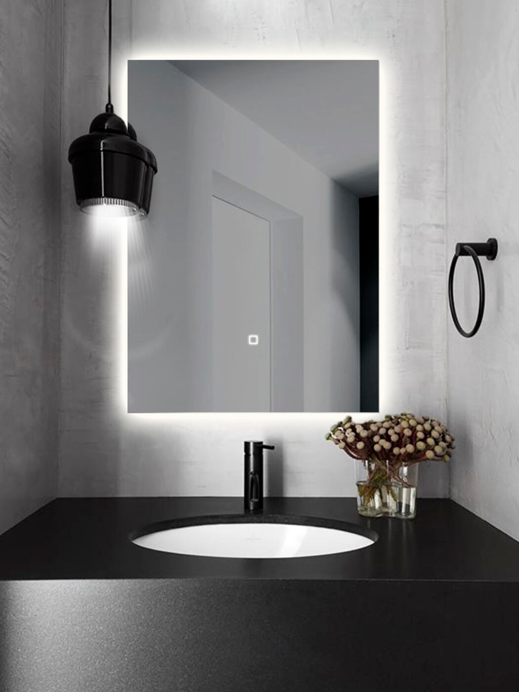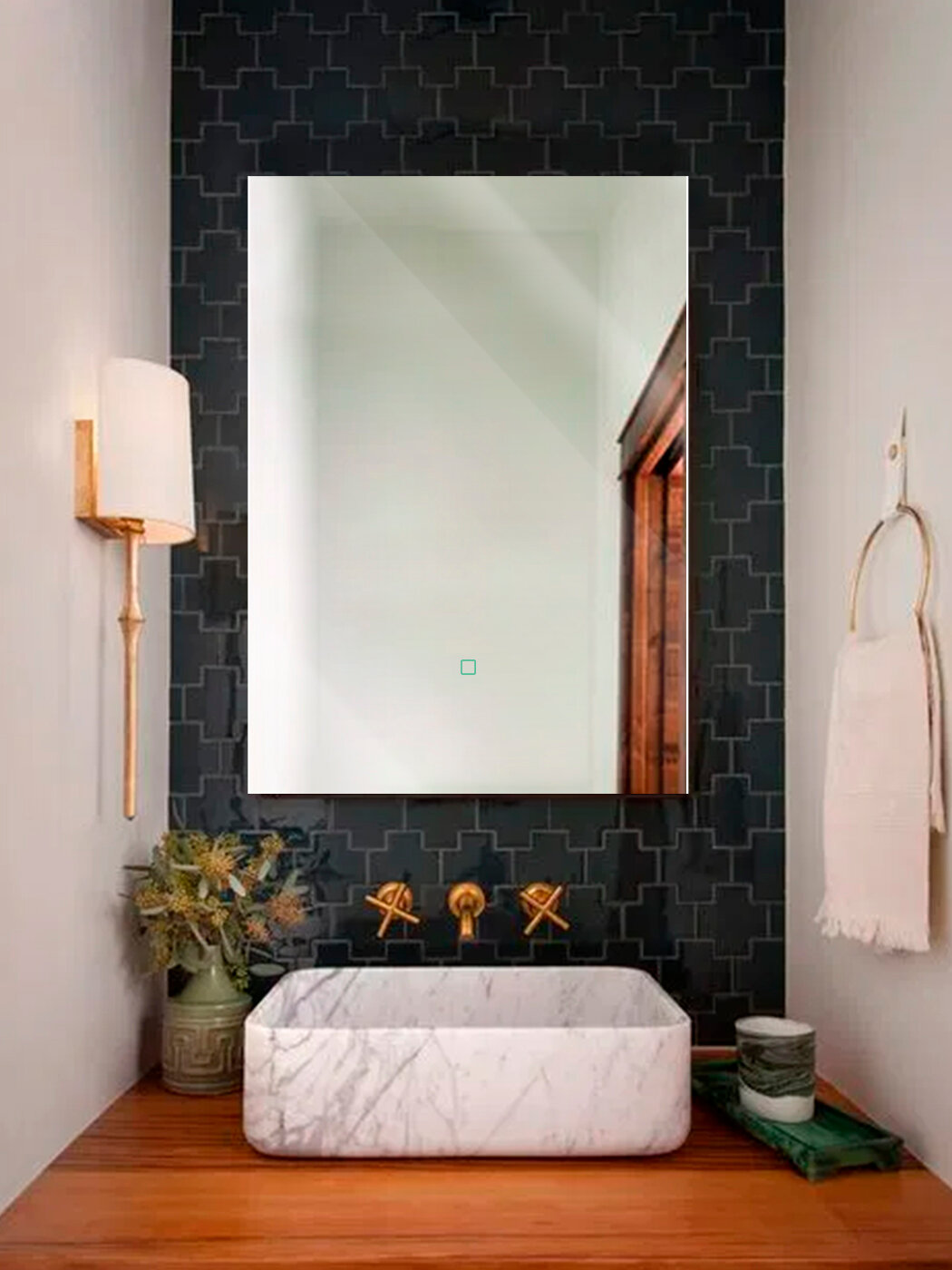 Зеркало настенное для ванной КерамаМане 70*100 см с холодной подсветкой 6000 К с сенсорной кнопкой