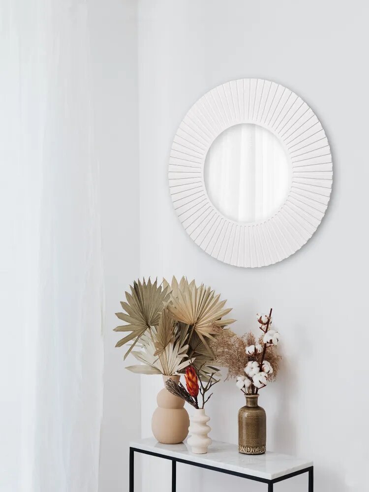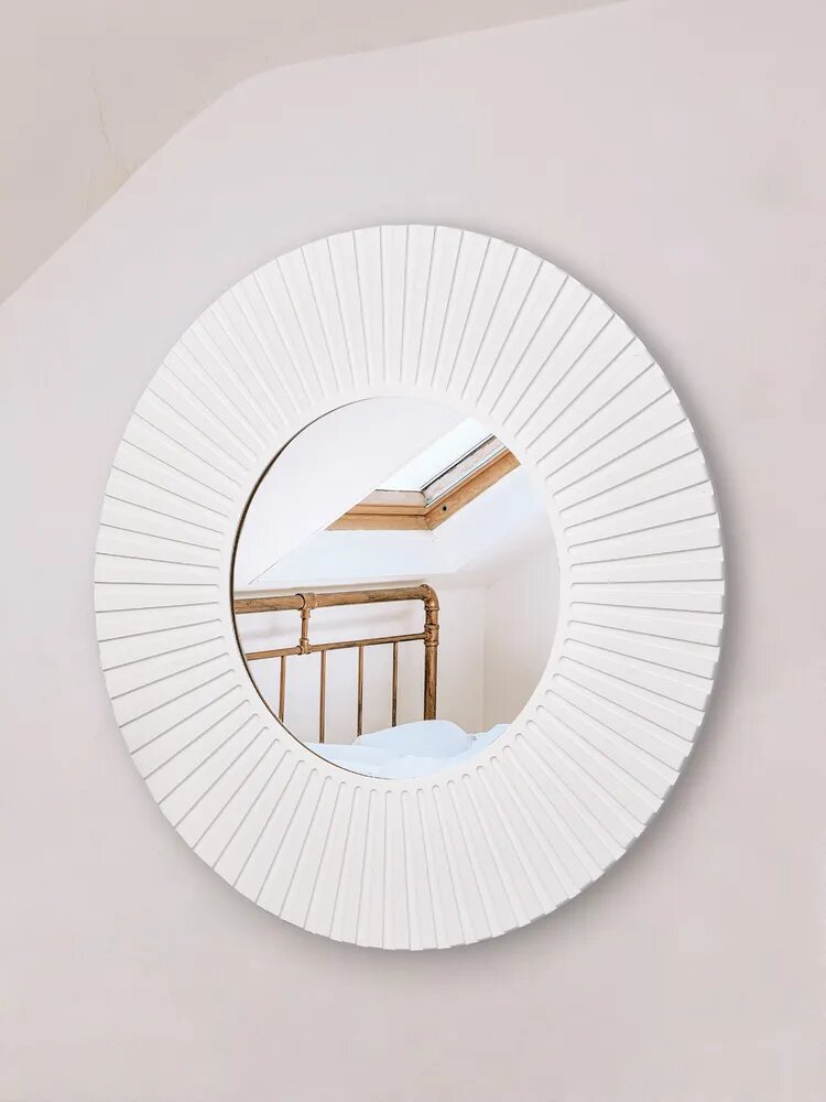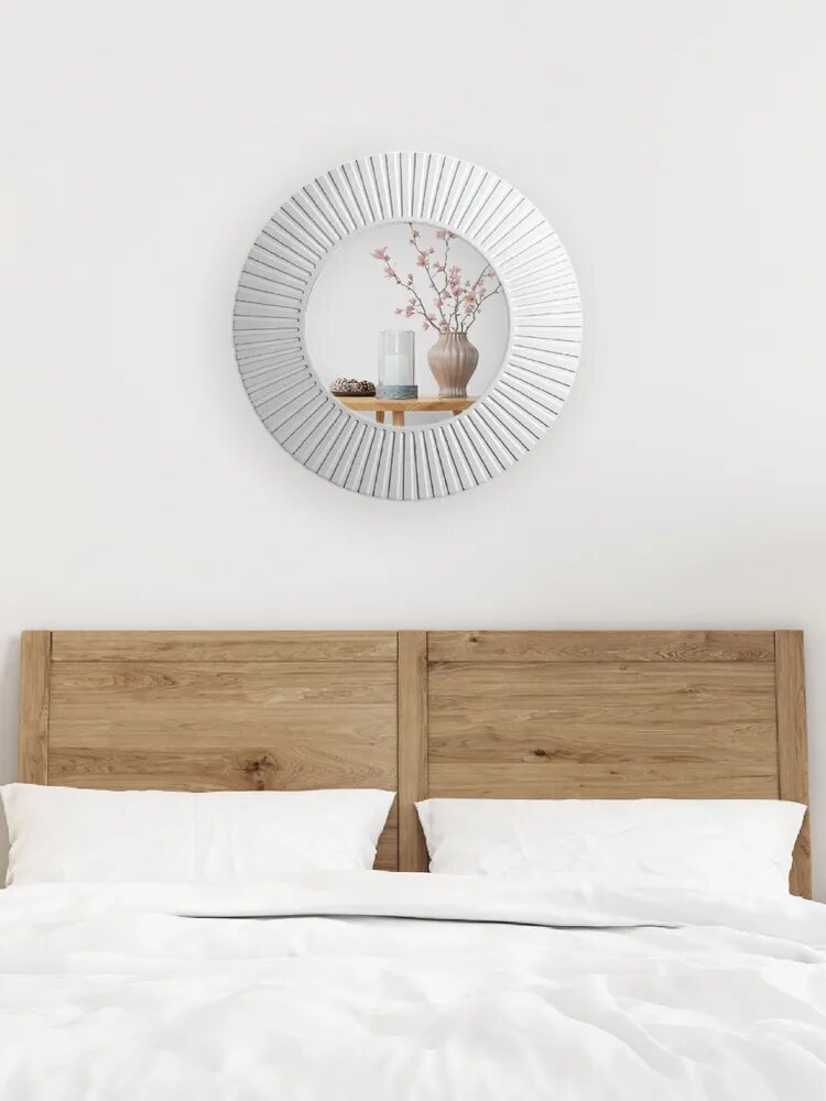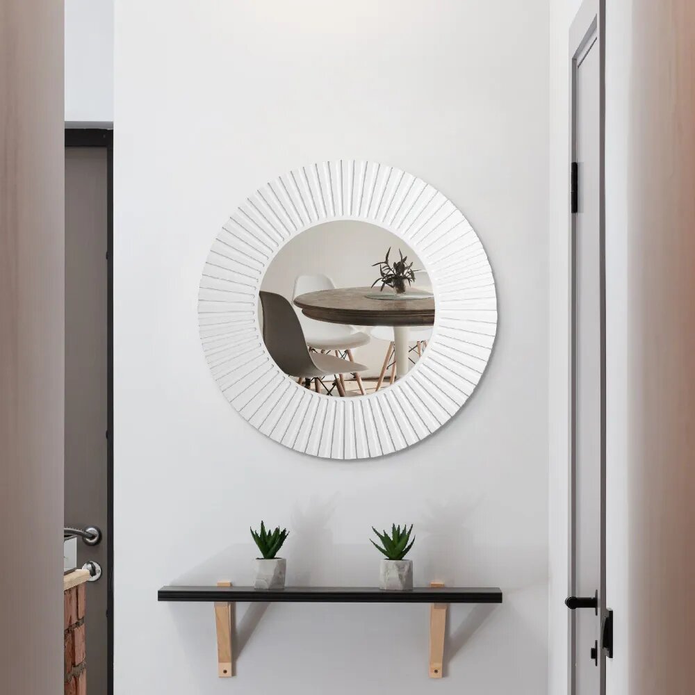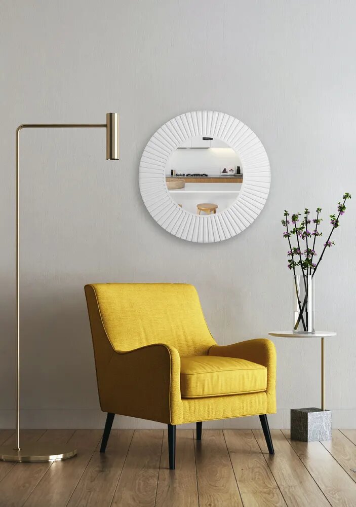 Зеркало Postermarket "Рей", круглое, настенное, в раме, цвет : белый, 70х70 см интересное: