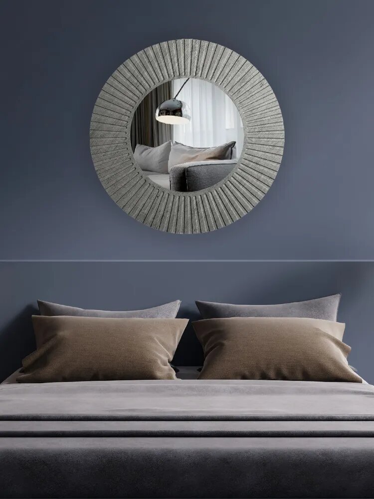 Зеркало Postermarket "Рей", круглое, настенное, в раме, цвет : серый, 70х70 см интересное: