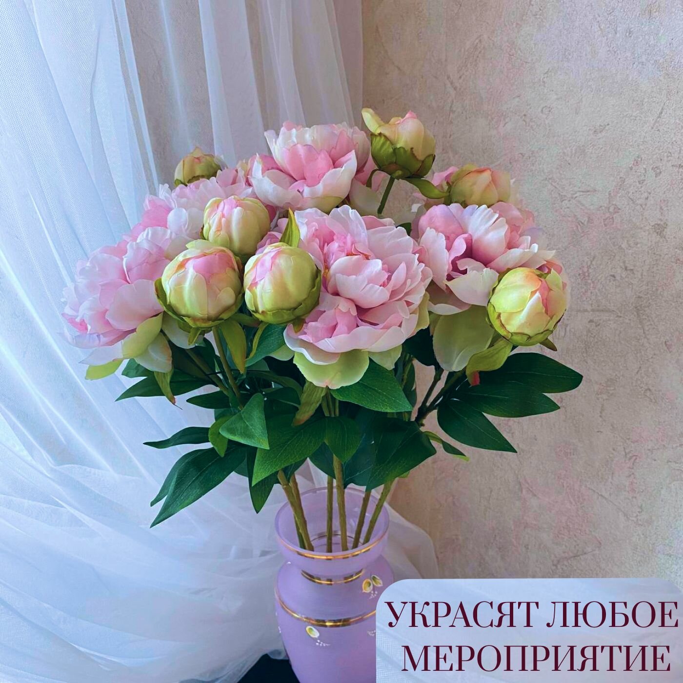 Искусственные цветы для декора / пионы и зелень / ампельная лиана
