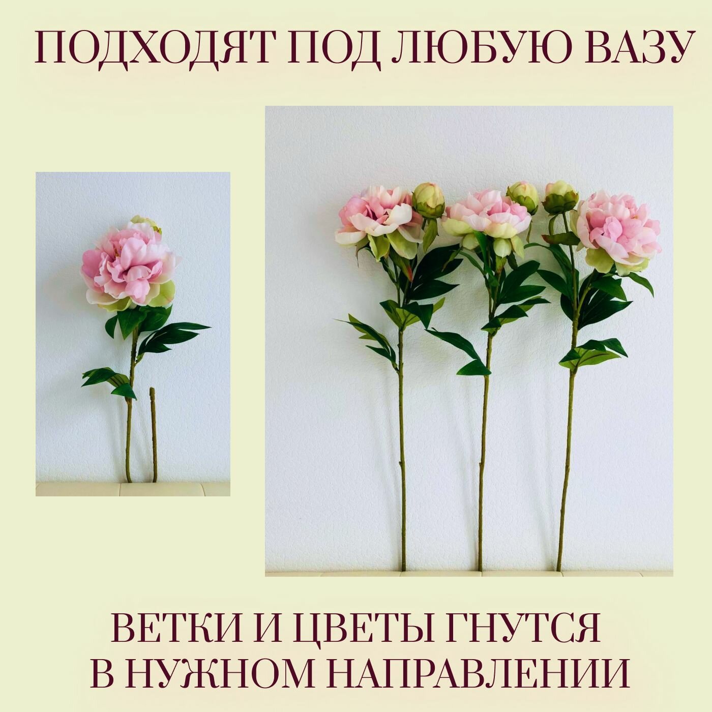 Искусственные цветы для декора/пионы цветочная композиция/букет для интерьера/3 куста 69 сма интересное:
