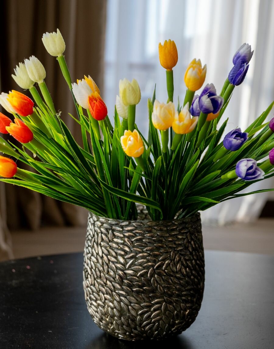 Купить Искусственные цветы как натуральные мини Тюльпаны 5 букетов по 7 веток 32 см ассорти