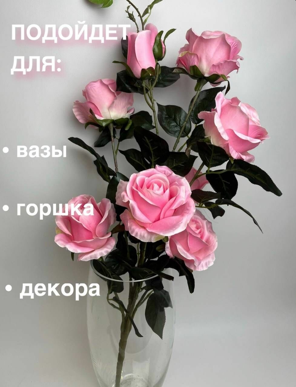 Искусственные цветы Роза кустовая розовая, букет для декора интересное: