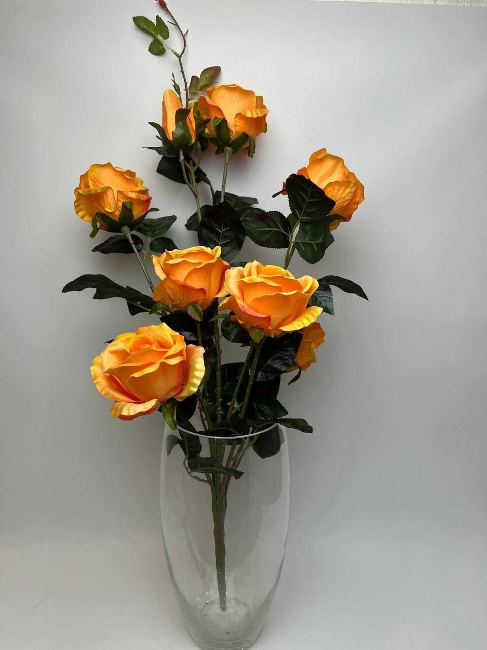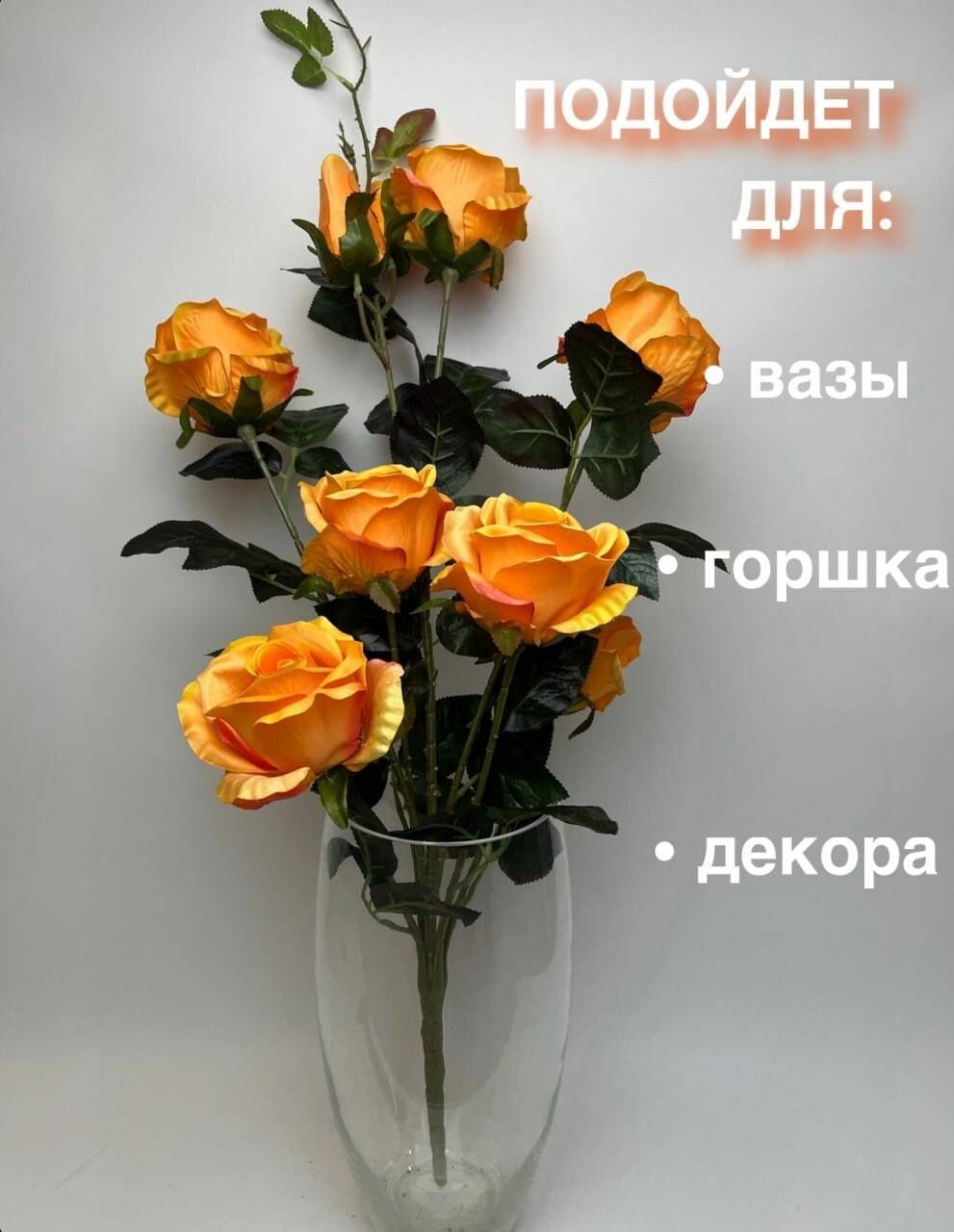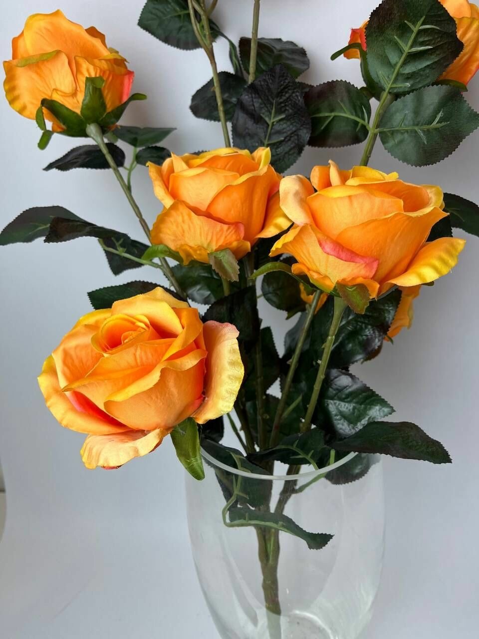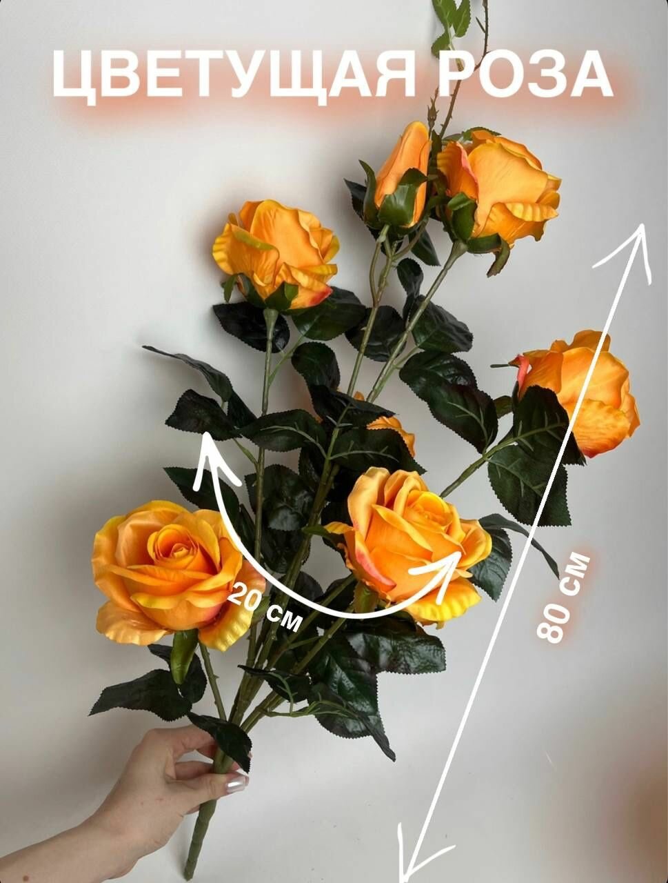 Искусственные цветы Роза кустовая ярко-оранжевая букет для декора интересное: