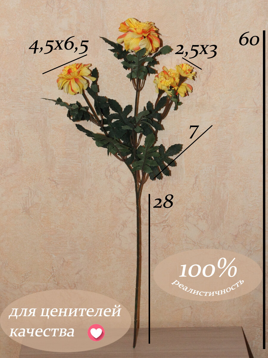 Купить Искусственные цветы Бархотка желтая /Искусственные цветы для декора/Декор для дома