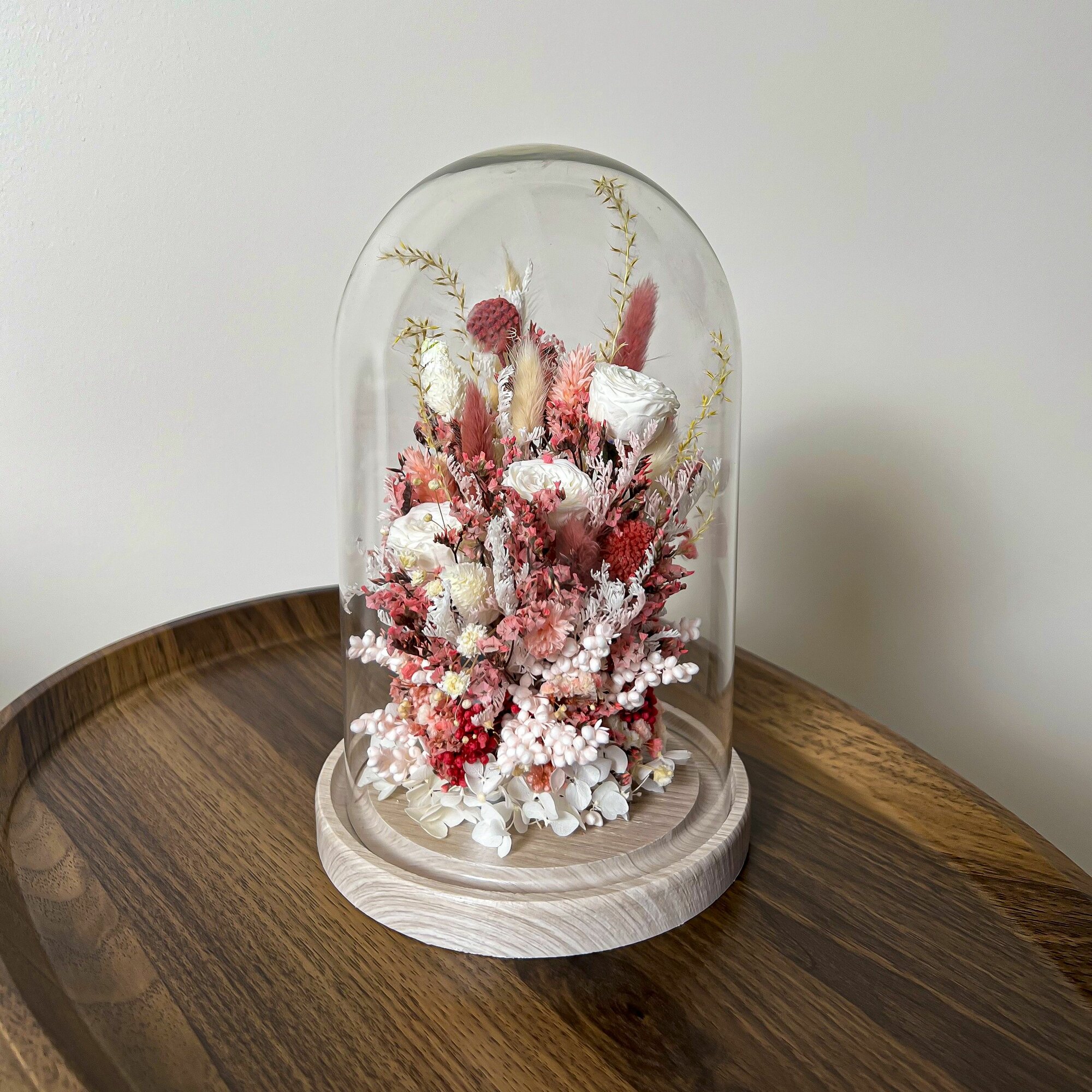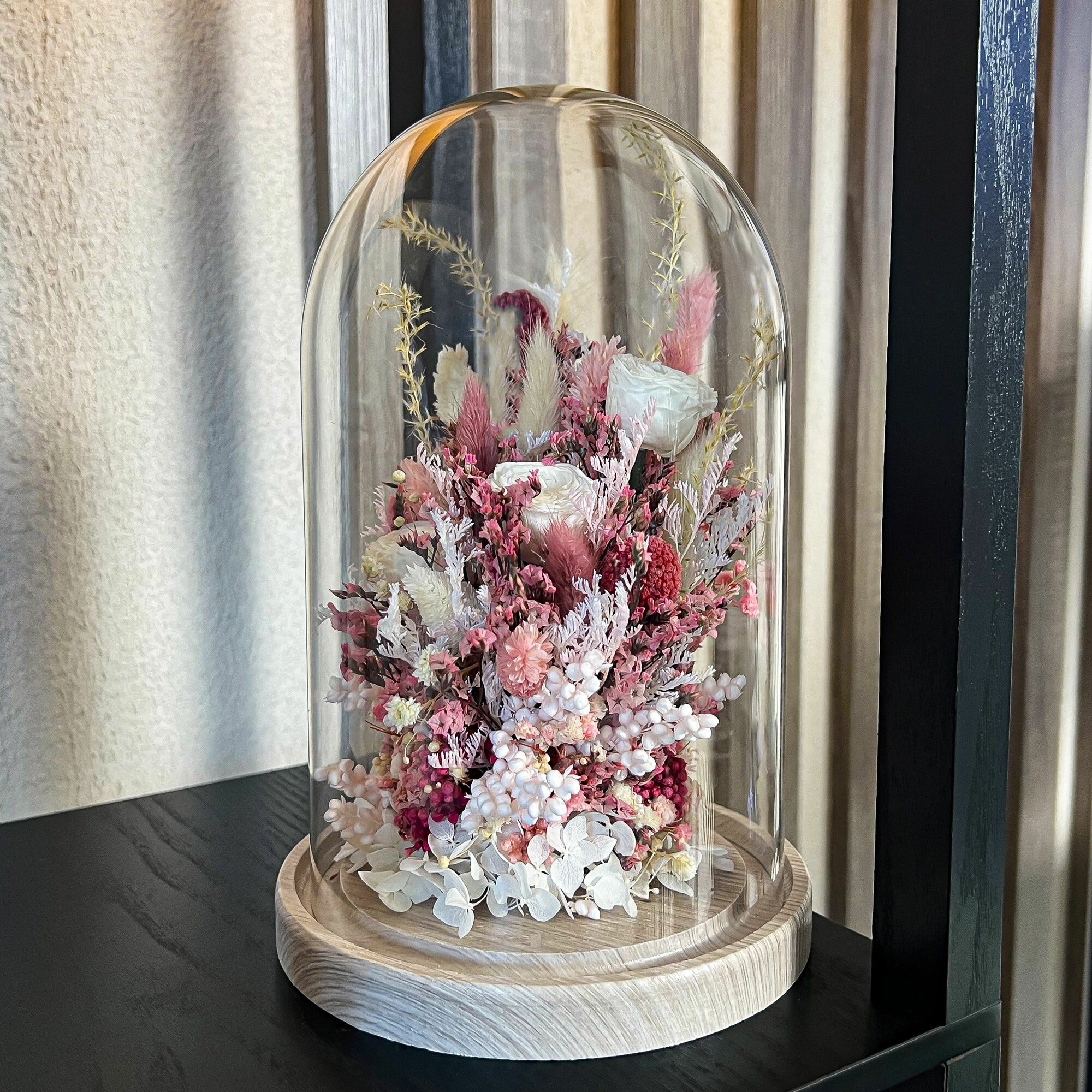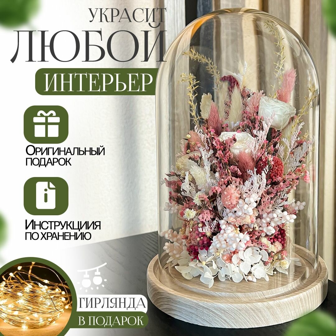 Стабилизированные цветы и сухоцветы в колбе 22 см. "Розовая мечта"