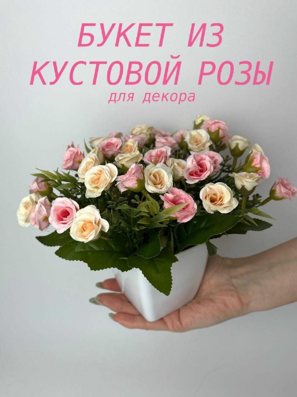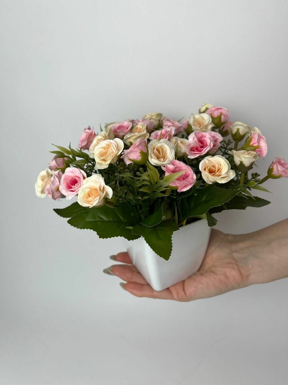 Купить Искусственные цветы букет роз розово-желтый в горшке /кашпо композиция цветов для декора