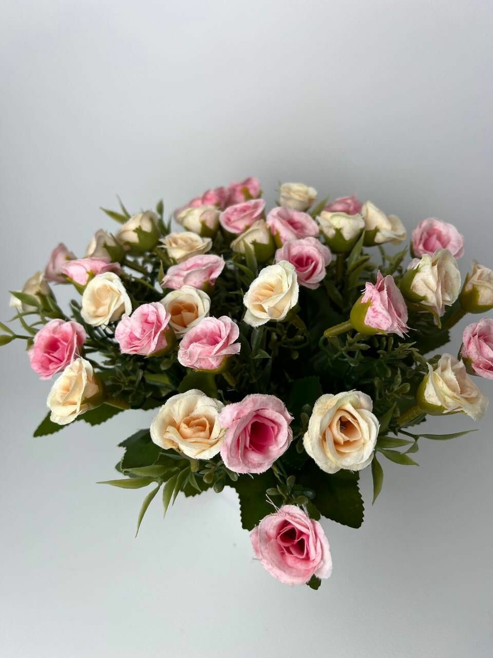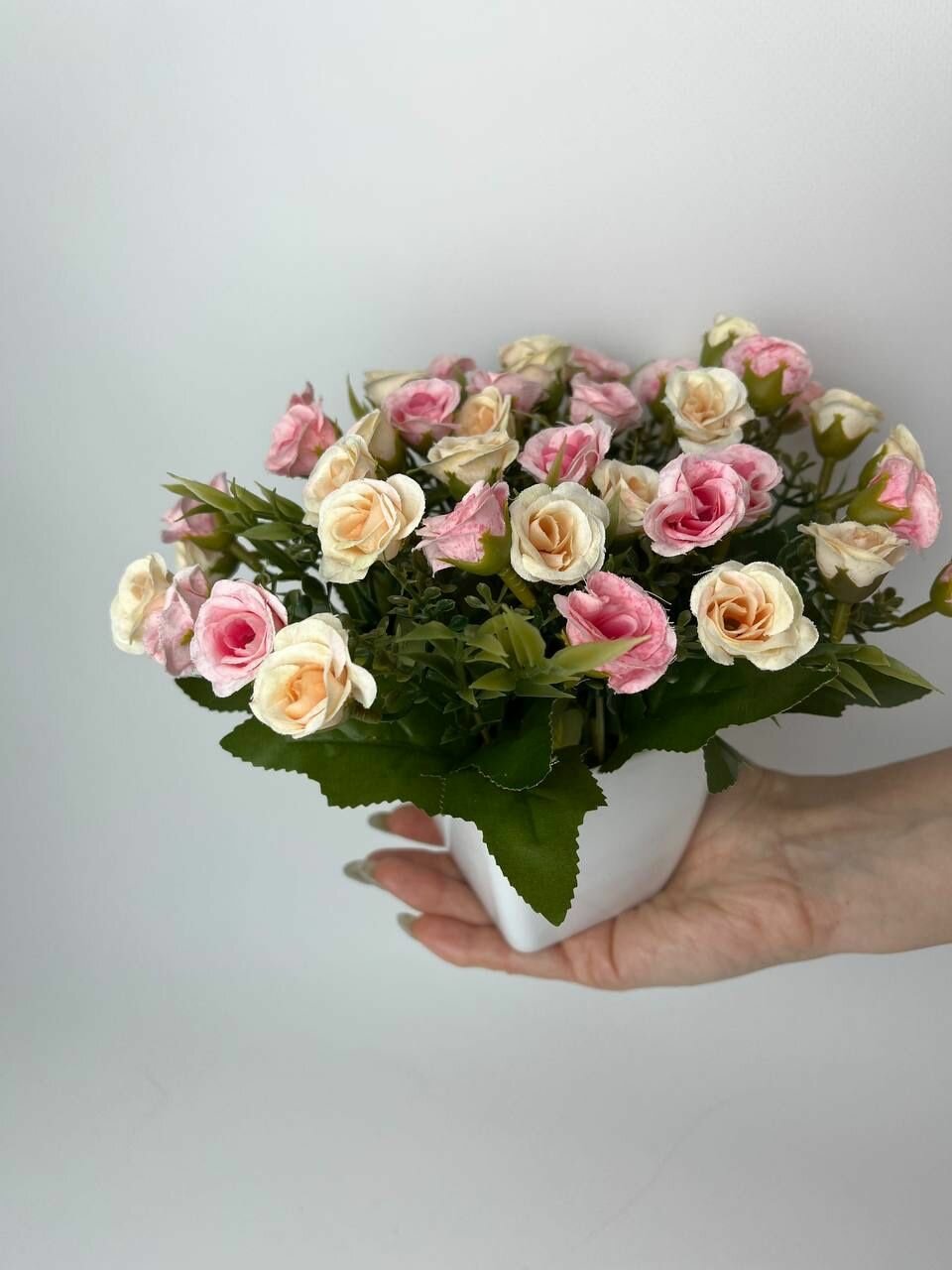 Искусственные цветы букет роз бежевый в горшке /кашпо композиция цветов для декора