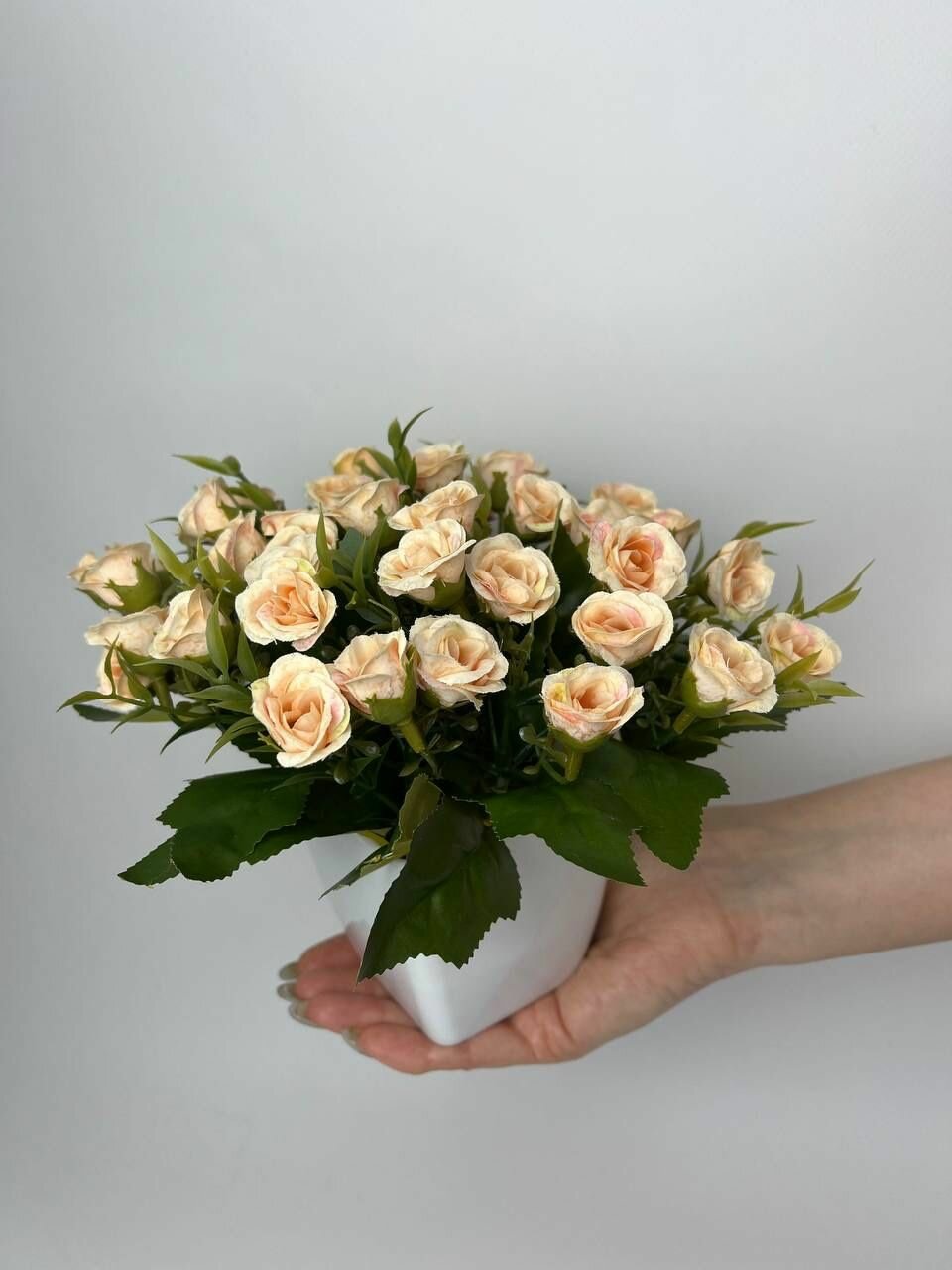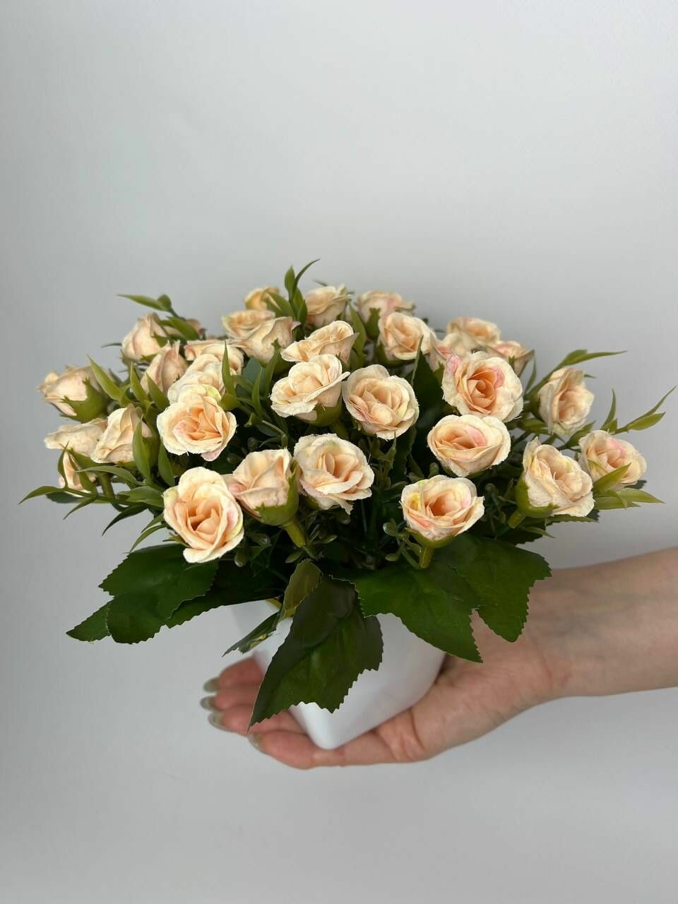 Искусственные цветы букет роз светло-персиковый в горшке /кашпо композиция цветов для декора
