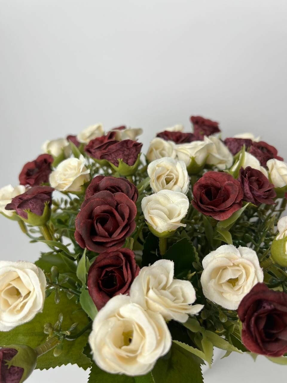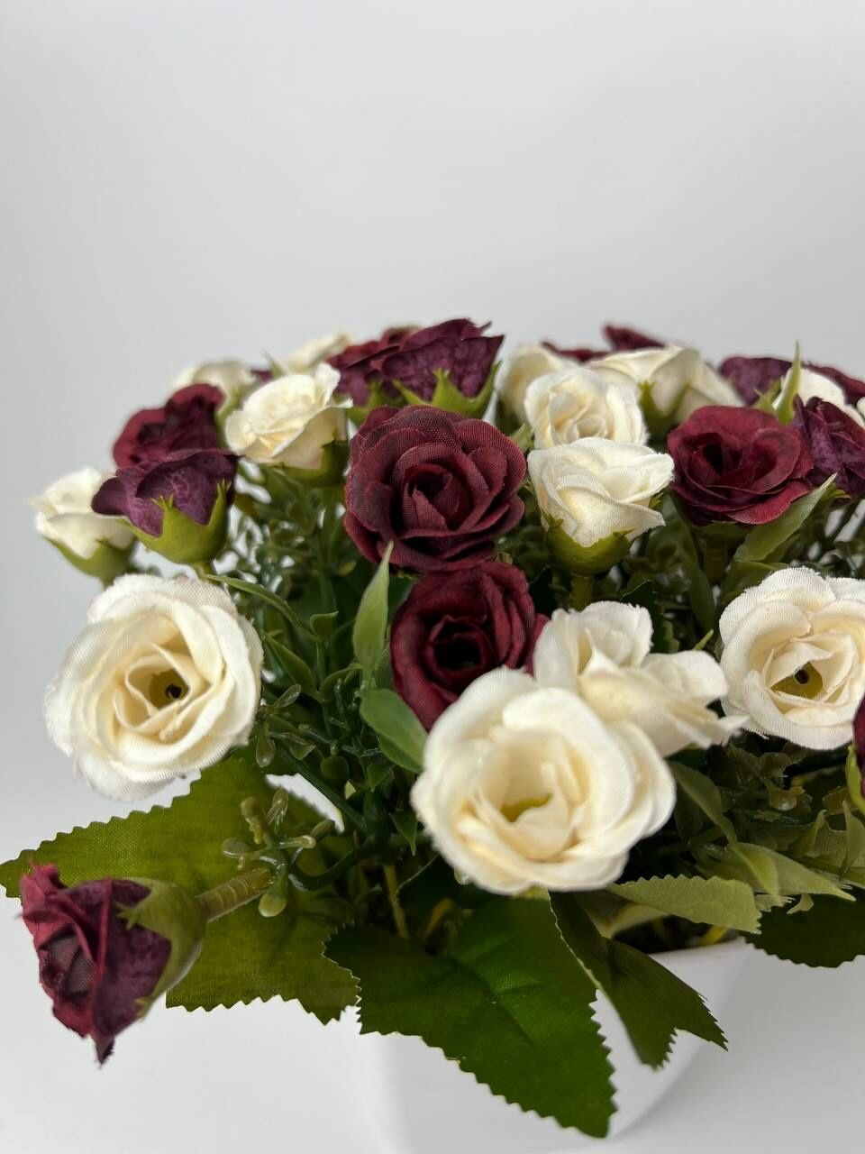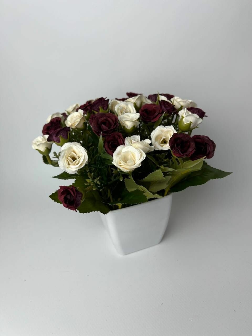 Купить Искусственные цветы букет роз бордово-белый в горшке /кашпо композиция цветов для декора