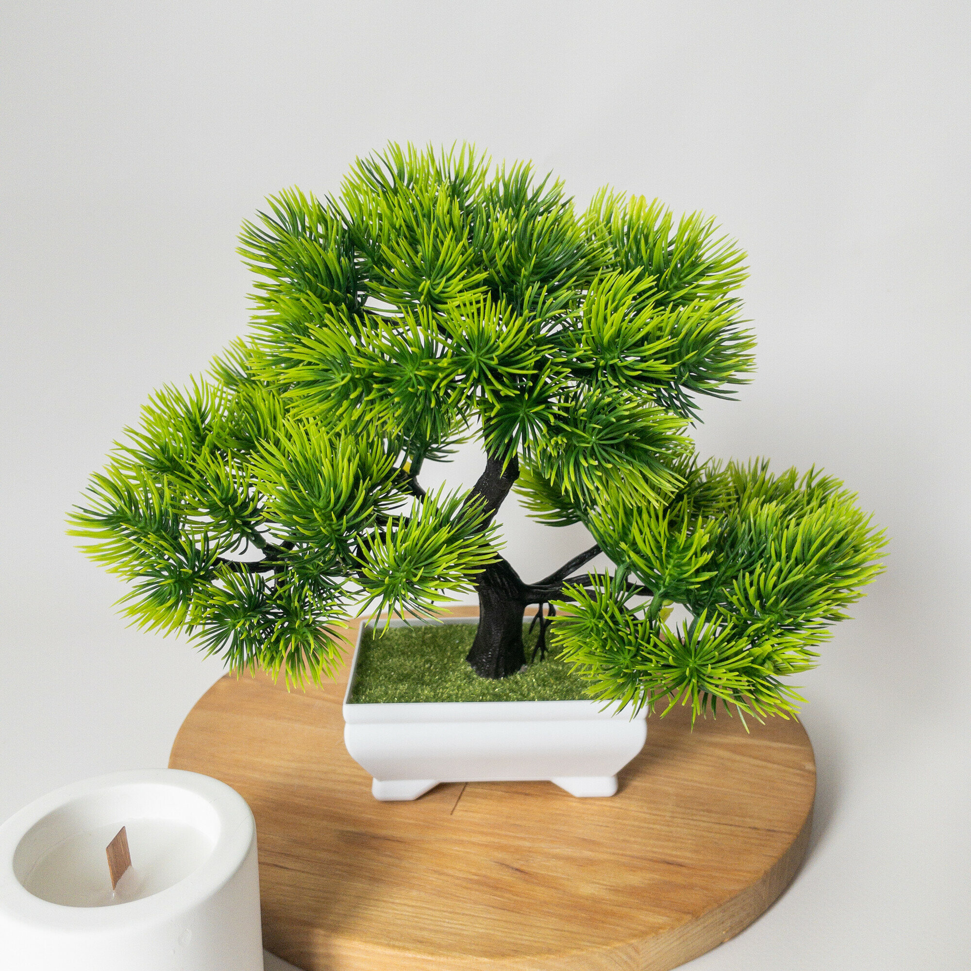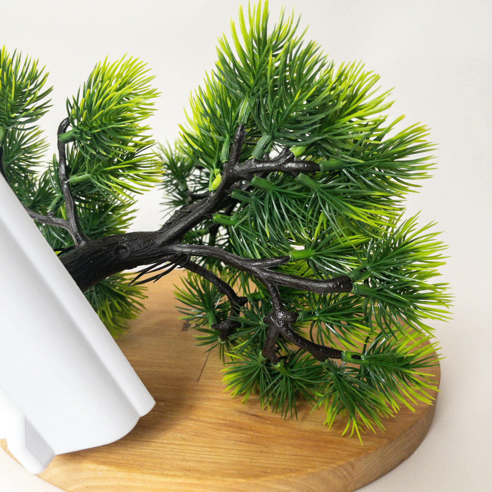 Бонсай полумесяц, Зелень искусственная в белом кашпо, высота 20 см, 1 шт.