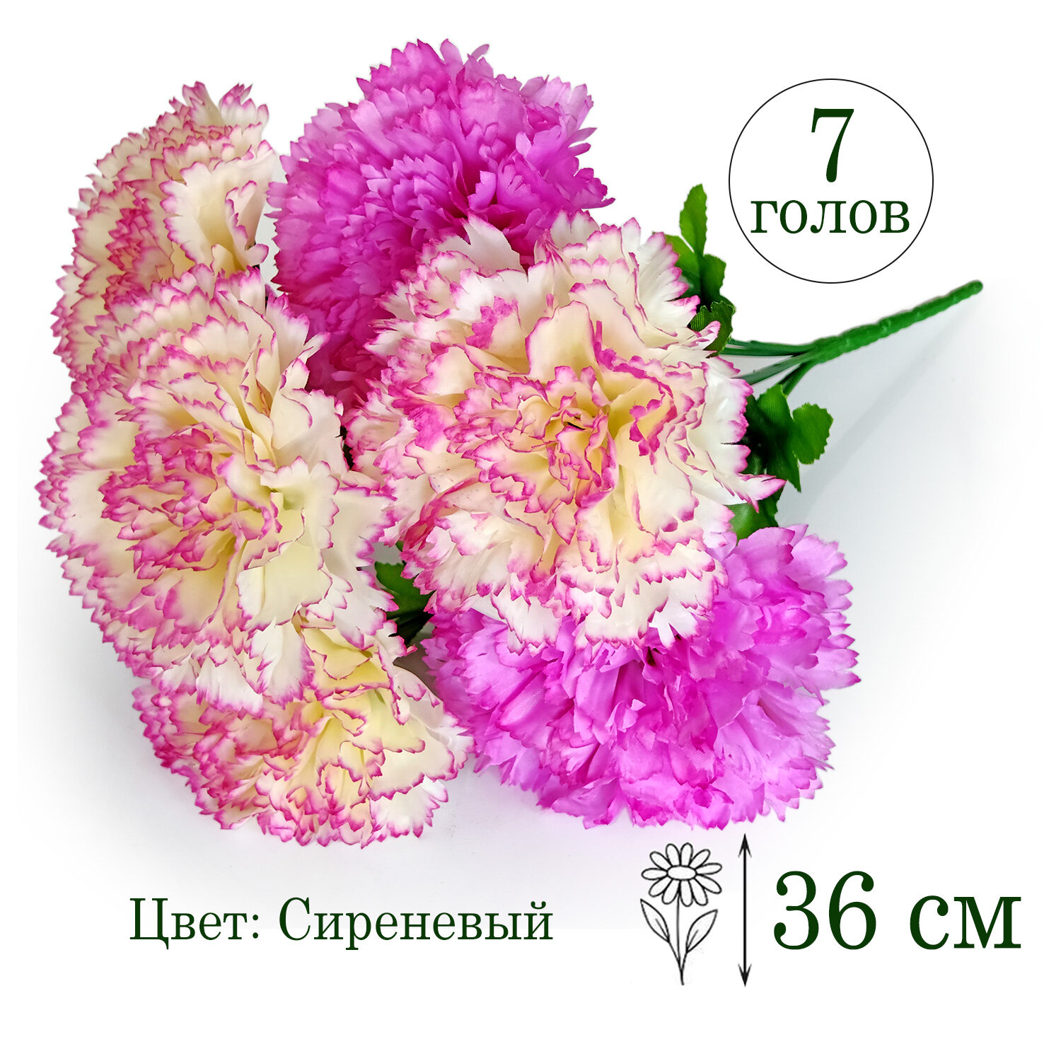 Искусственные цветы "Гвоздики сиреневые", букет 24х36 см. 7 голов интересное: