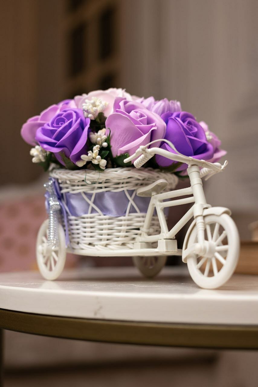 Букет декоративных цветов. Цвет сиреневый. Велосипед интересное: