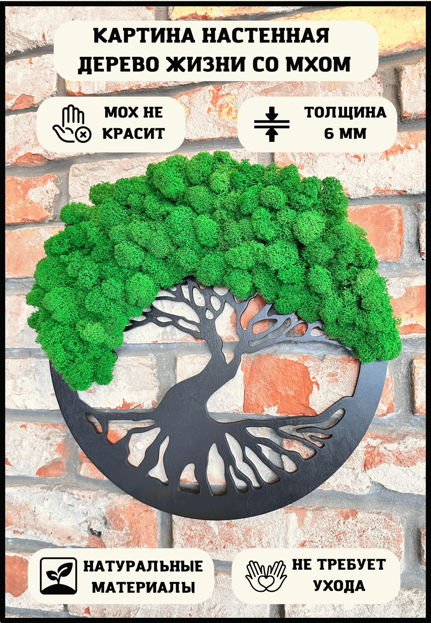 Дерево жизни Studia MiRaS, стабилизированный мох, диаметр 40см, настенное интересное: