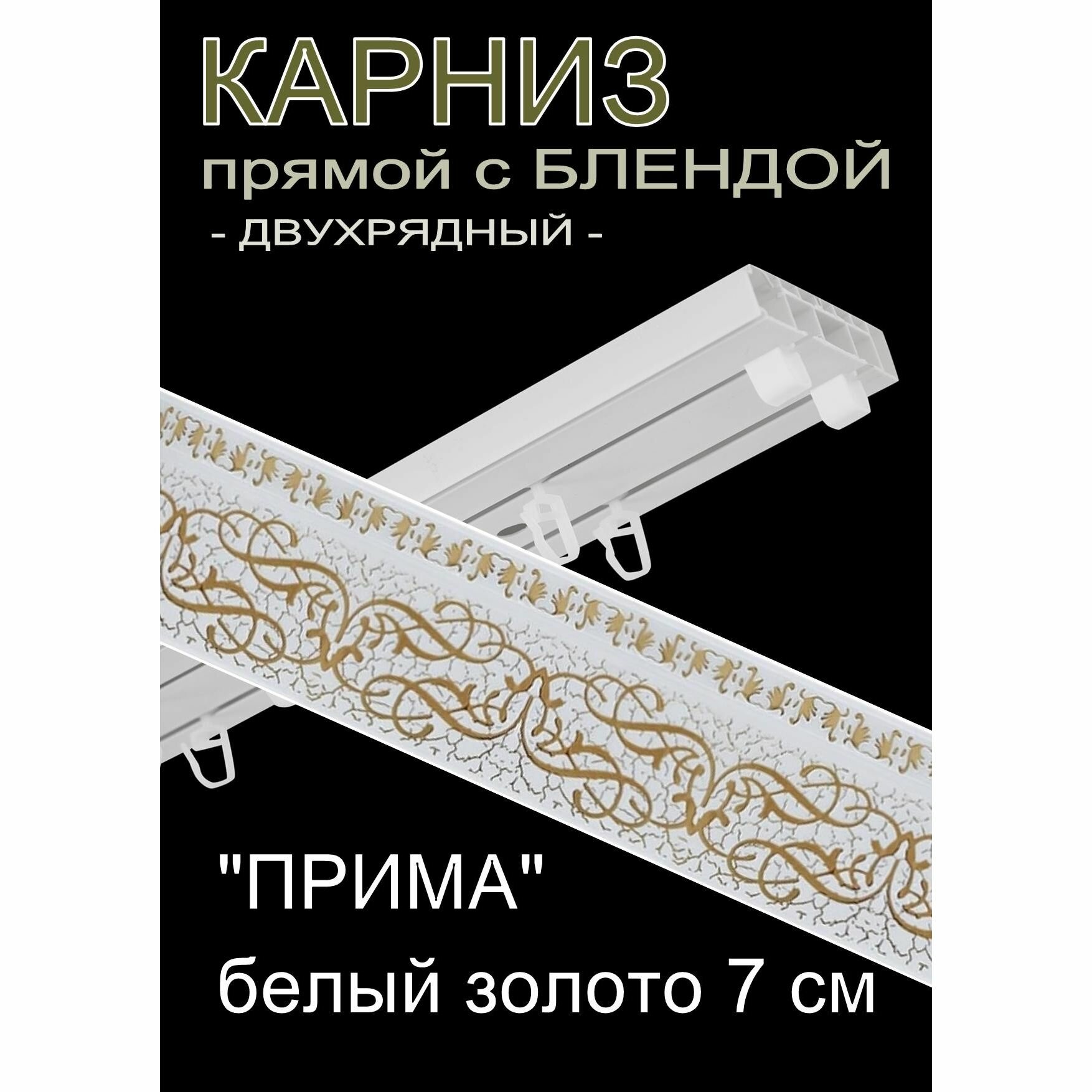 Багетный карниз, прямой, составной, 2-х рядный, 380 см, "Прима", белый золото 7 см