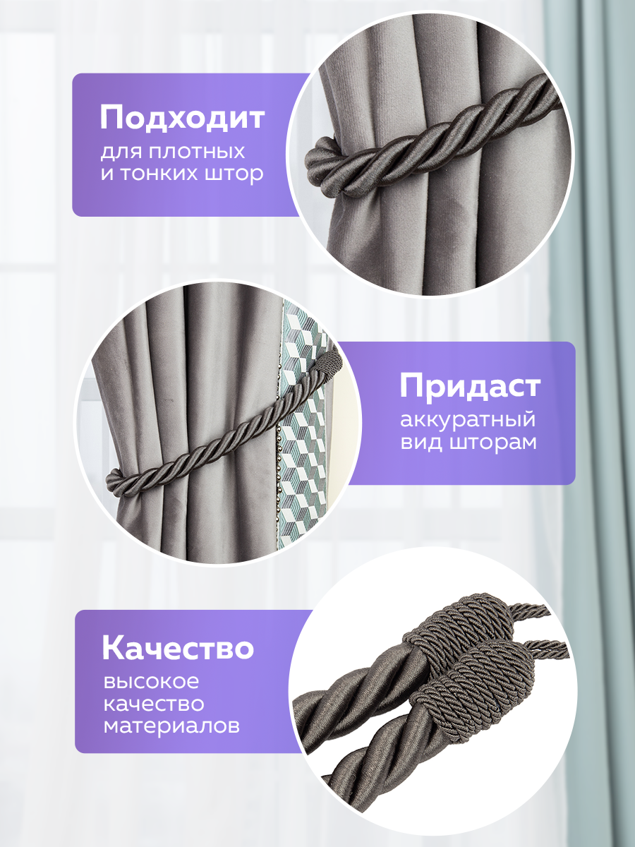 СохранитьПодхваты для штор Mirtex "Витой Шнур", текстиль, темно-серые, 1шт интересное: