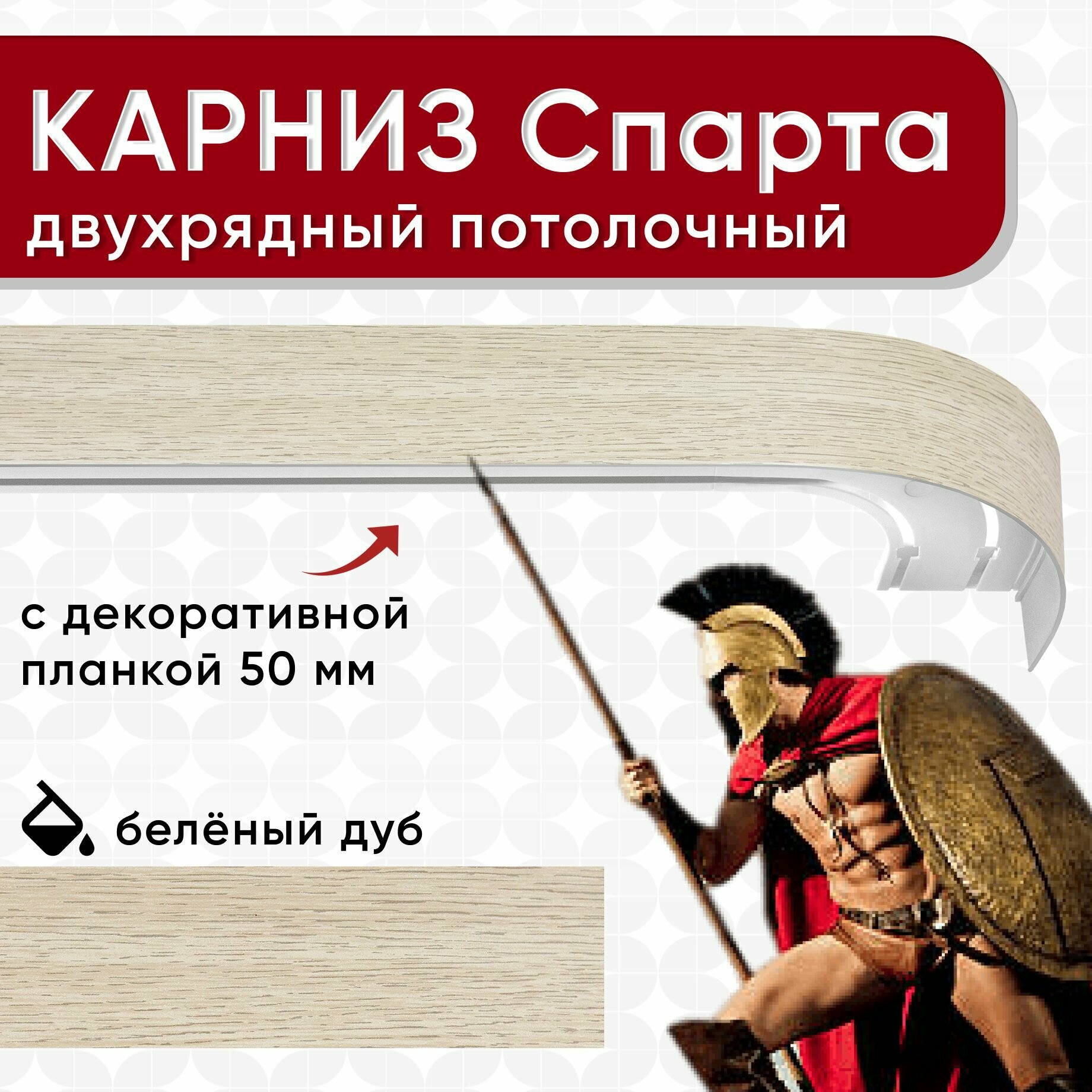 Карниз двухрядный Уют потолочный с блендой 50 мм, шинный, Спарта беленый дуб 160 см