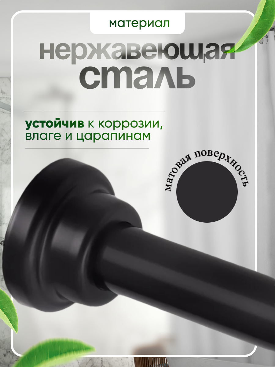 Карниз для ванной HomeGoods, раздвижной, телескопический, черный 120-220 см интересное: