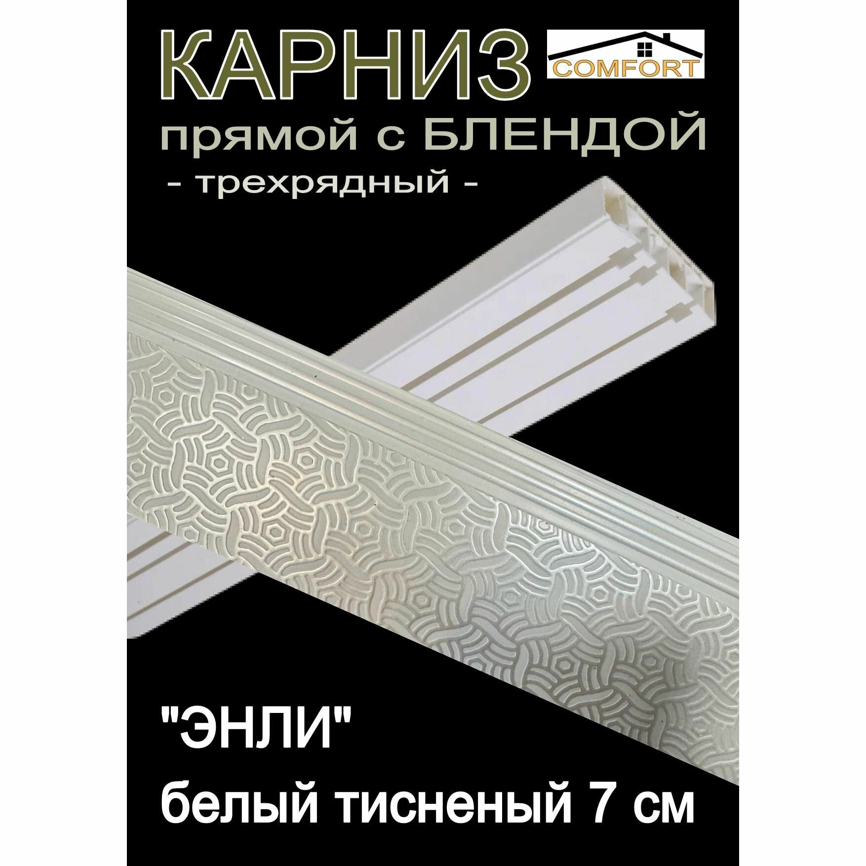 Багетный карниз прямой, составной, 3-х рядный, 160 см, "Энли" белый 7 см