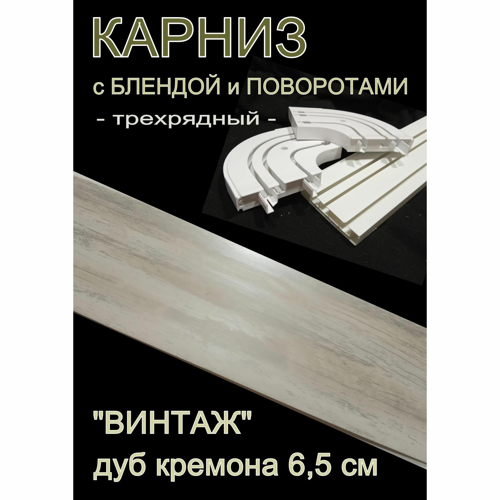 Купить Багетный карниз ПВХ с поворотами, 3-х рядный, 260 см, "Винтаж" дуб кремона 6,5 см