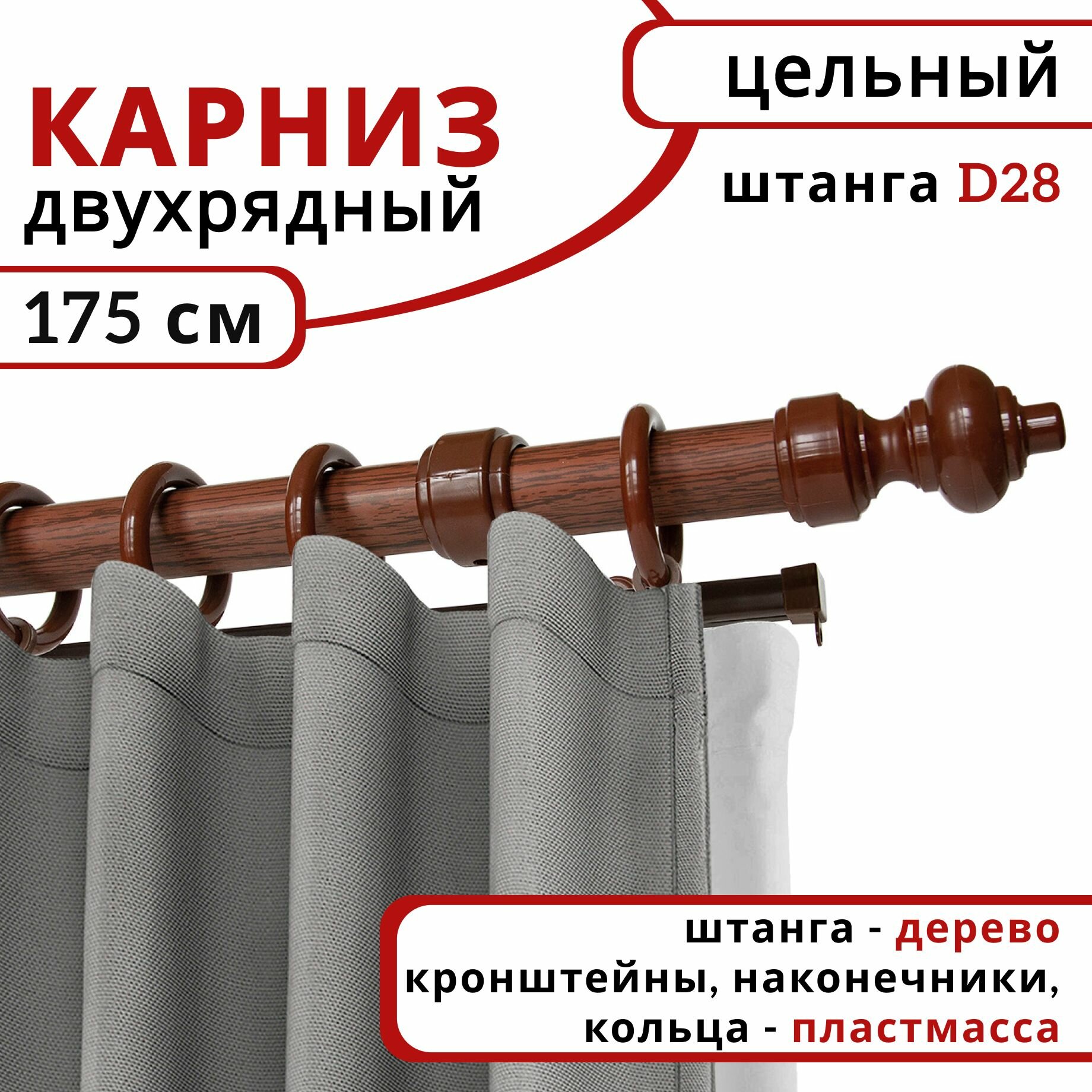 Купить Карниз для штор и тюля Уют, Круглый, Настенный, Деревянный, Двухрядный, Красное дерево, 175 см