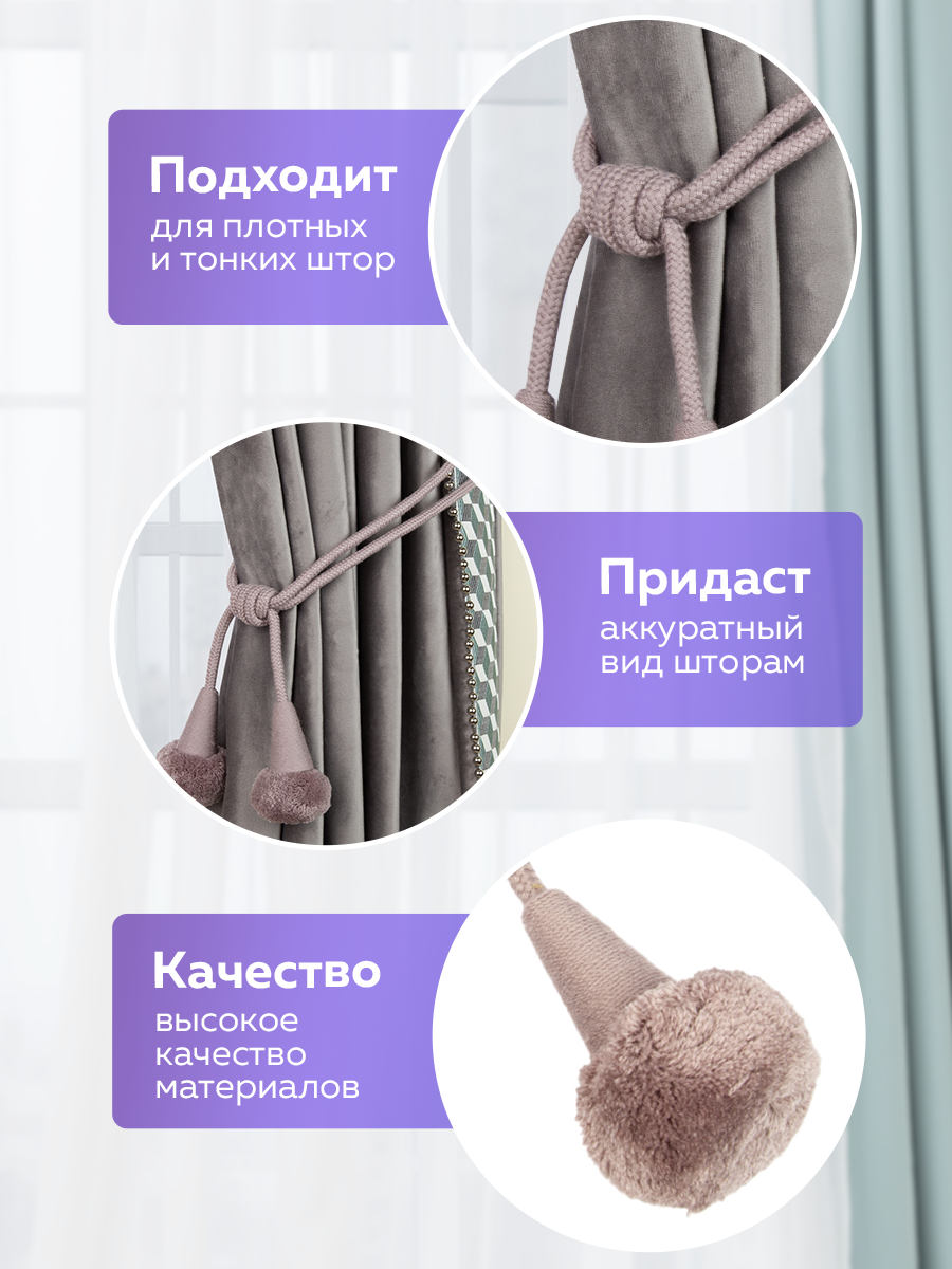 Подхват для штор Mirtex с помпонами, подвесной, универсальный, 50см