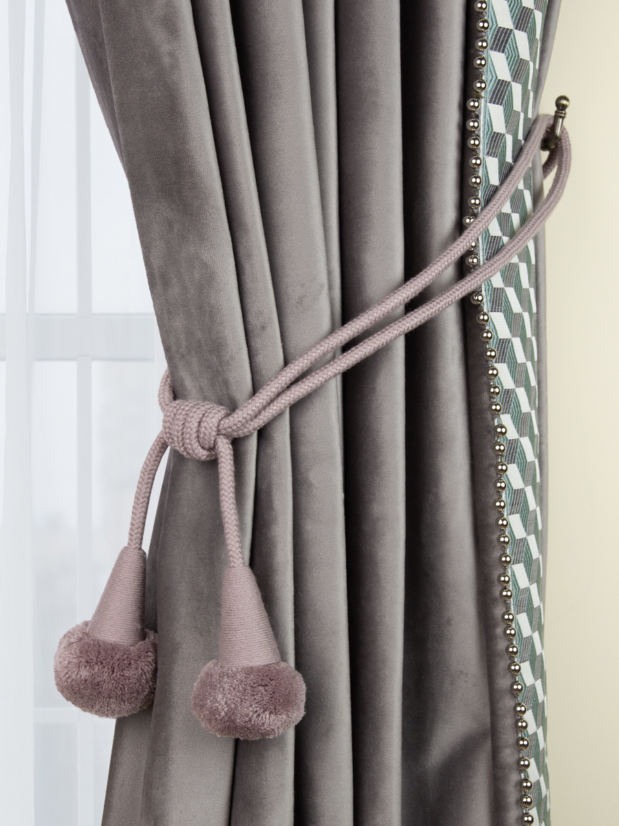 Подхваты для штор "Mirtex" с помпоном, 50см, темно-серые, 1шт.